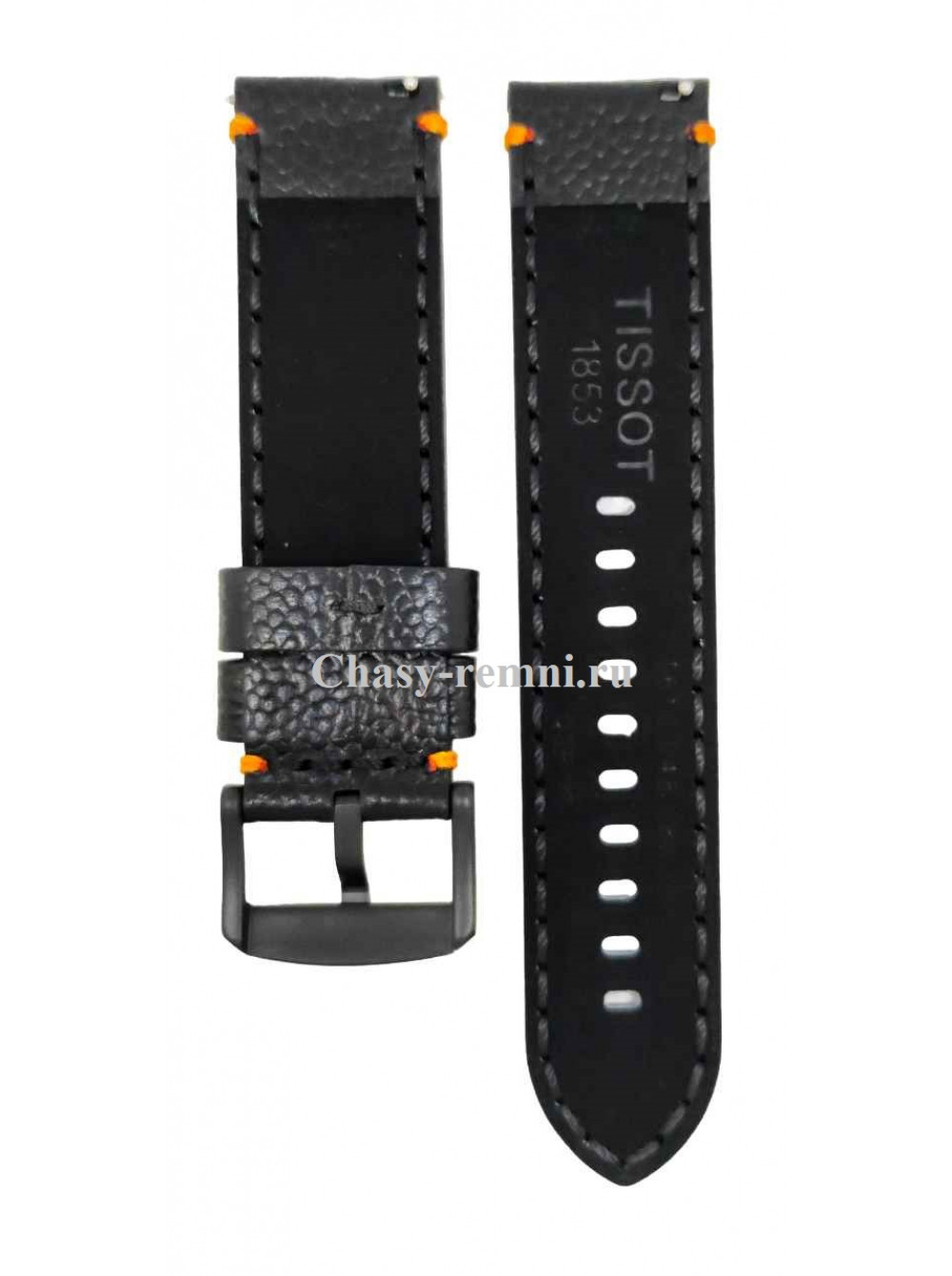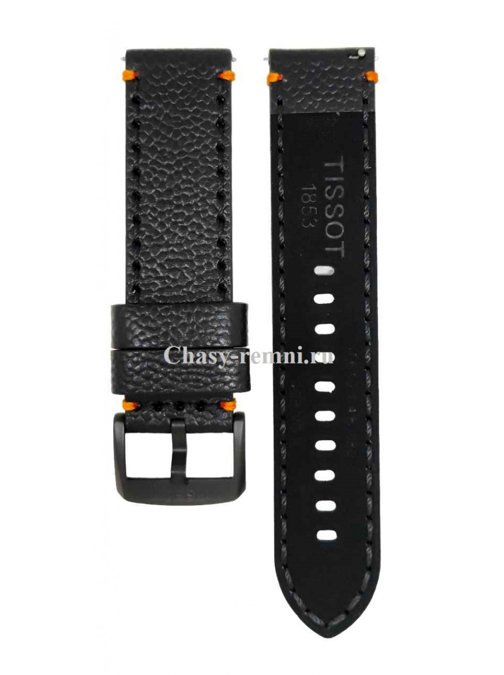 Оригинальный черный, кожаный ремешок TISSOT, гладкий, с черной прострочкой, черная пряжка. SUPER SPORT. Размер входящий в корпус и на пряжку 22/22 мм. Длина ремешка 75*120 мм.