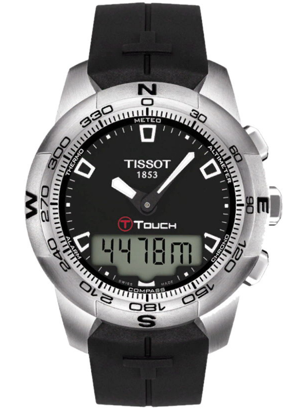 Оригинальный черный, каучуковый ремешок TISSOT, интегрированный под корпус, стальная клипса. T-TOUCH EXPERT.