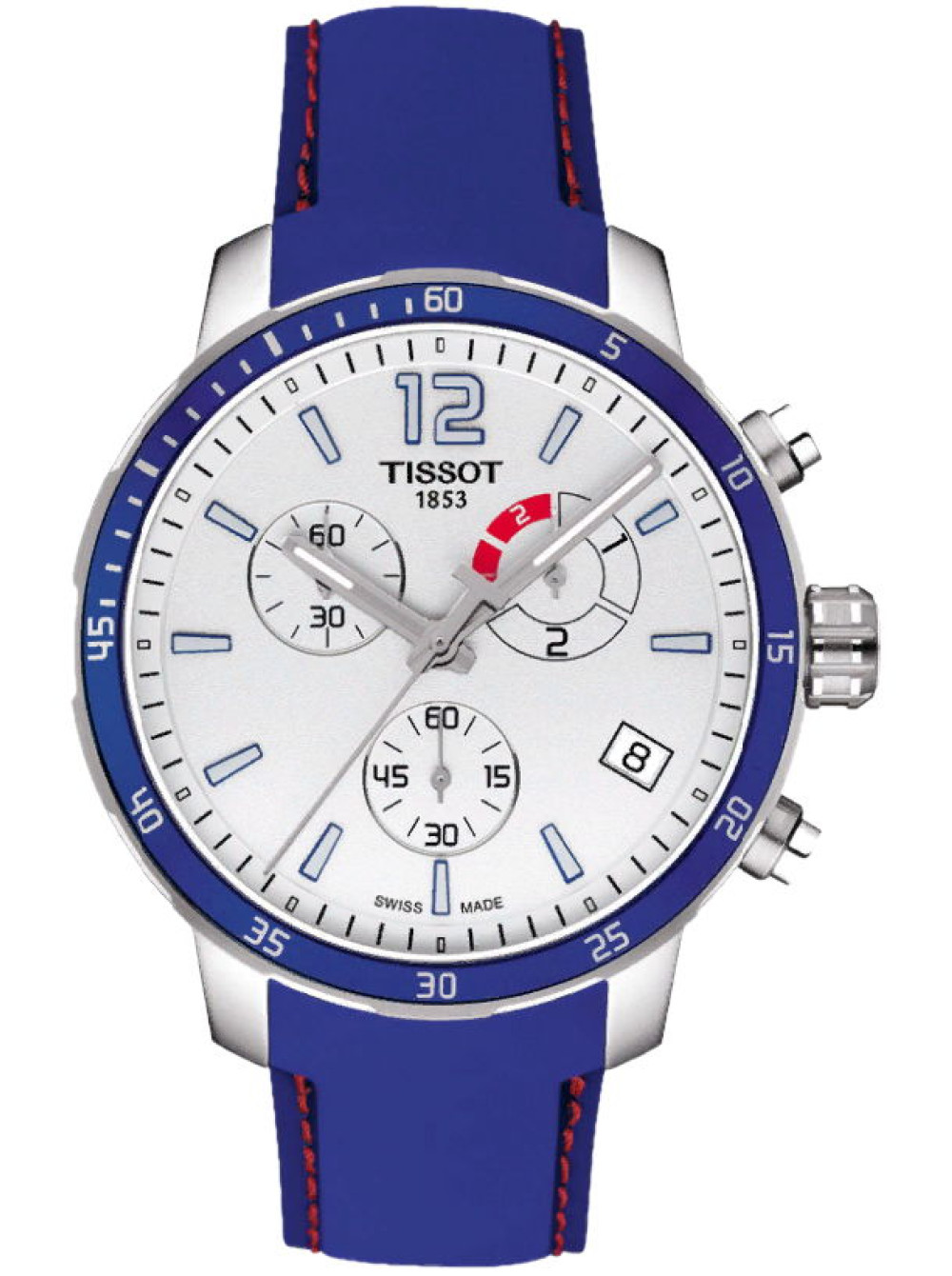 Оригинальный синий, силиконовый ремешок TISSOT, интегрированный под корпус, с красной прострочкой, стальная пряжка. QUICKSTER. Подходит для модели часов T095.449 (на крышке T095449A)