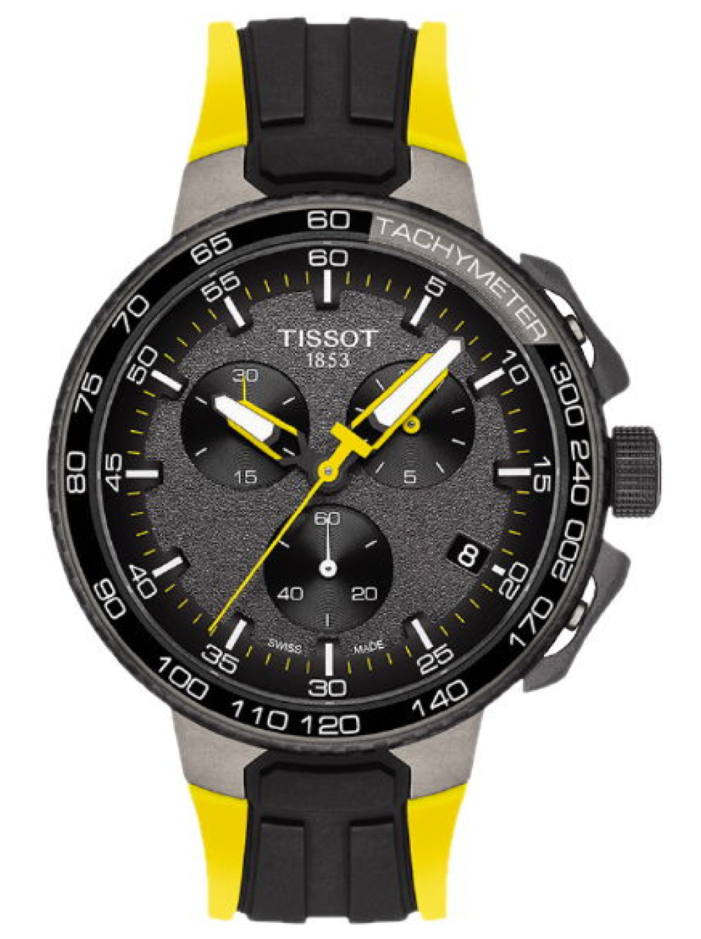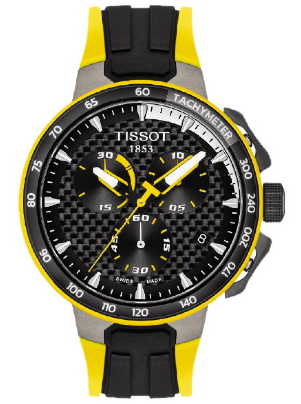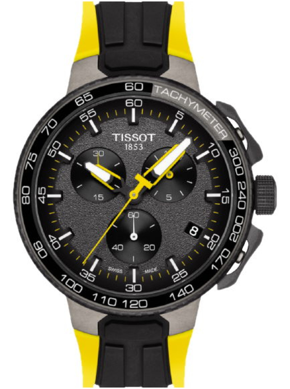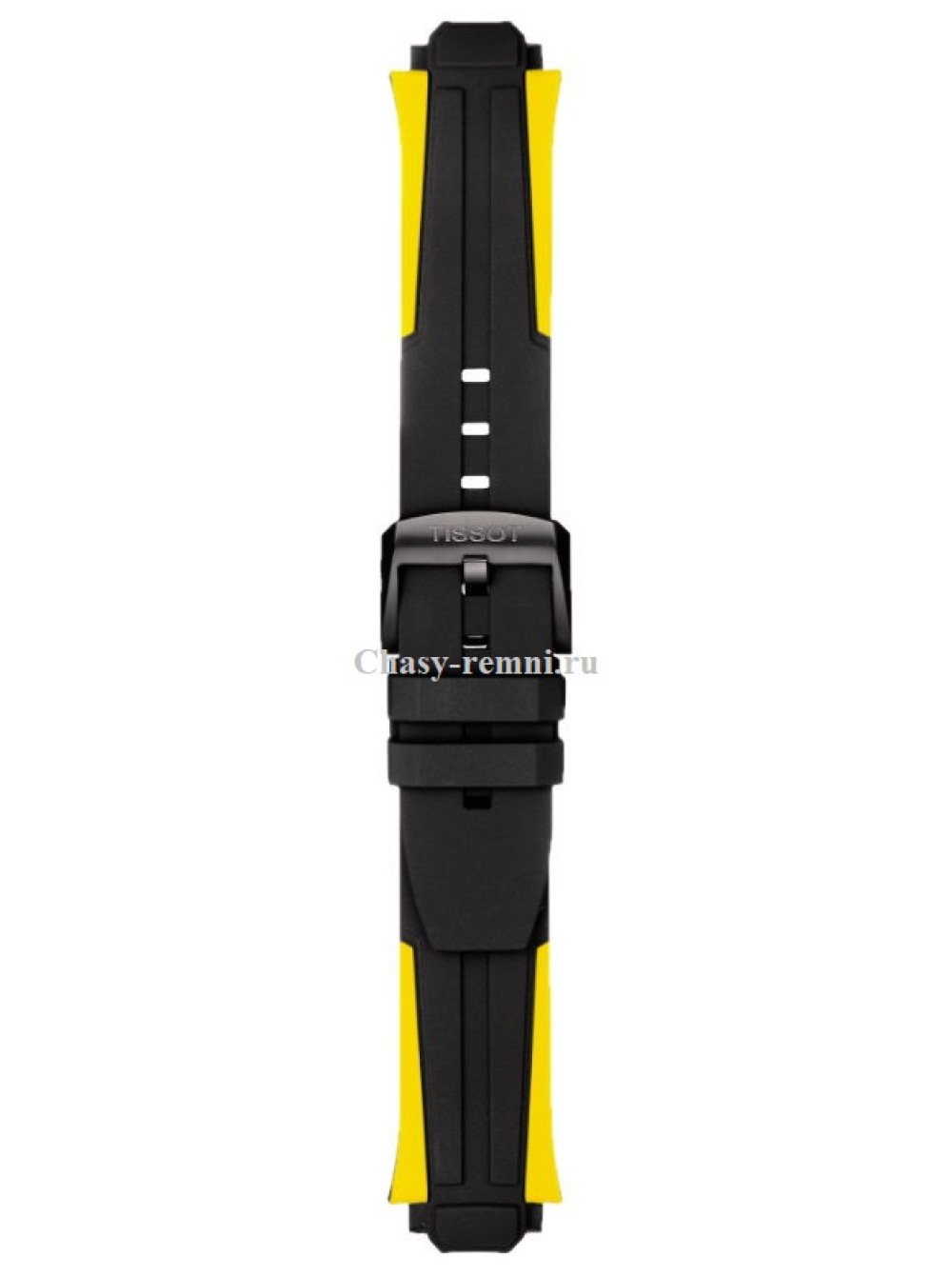 Оригинальный черный/желтый каучуковый ремешок TISSOT, интегрированный под корпус, черная пряжка. T-RACE.