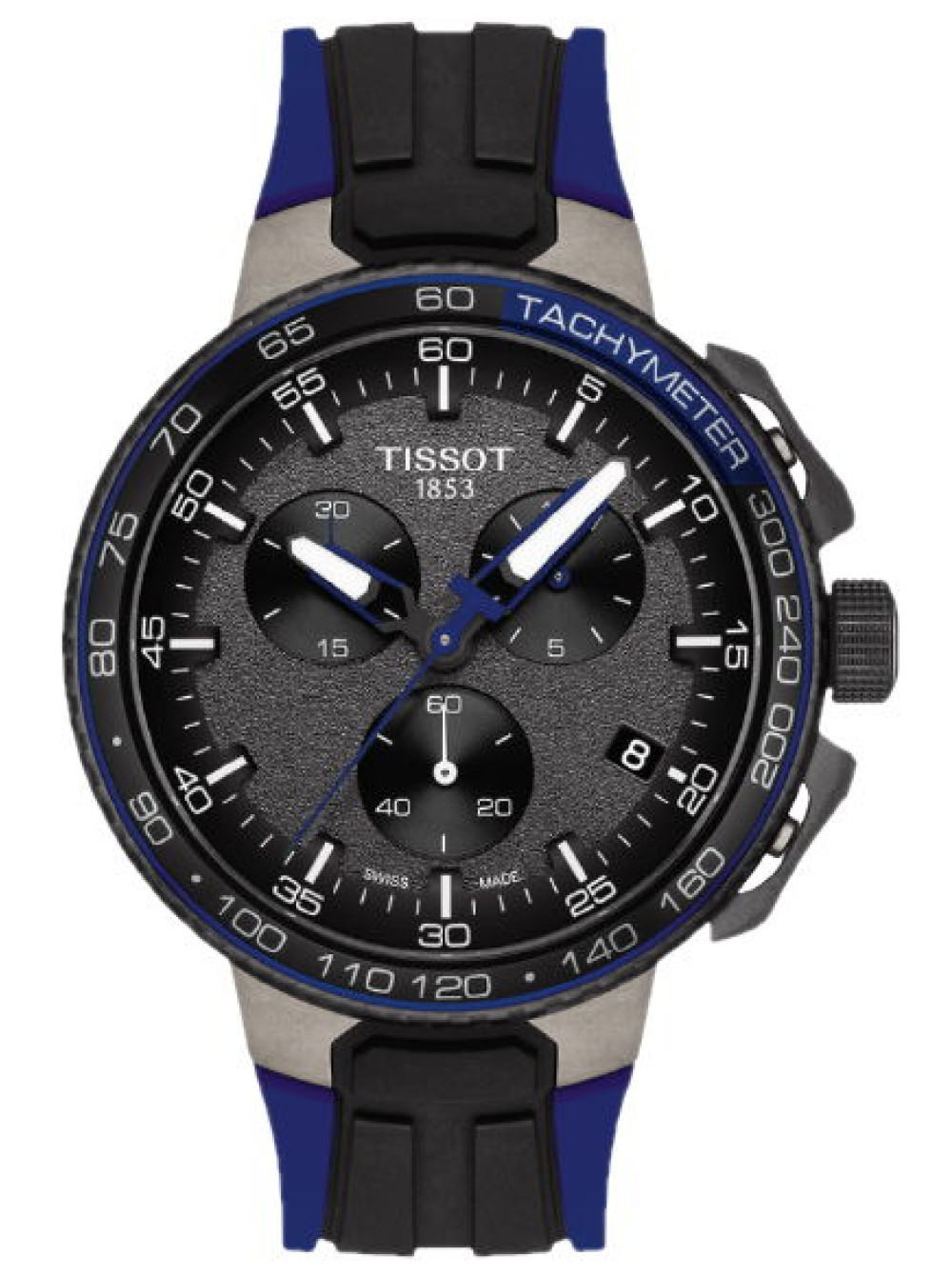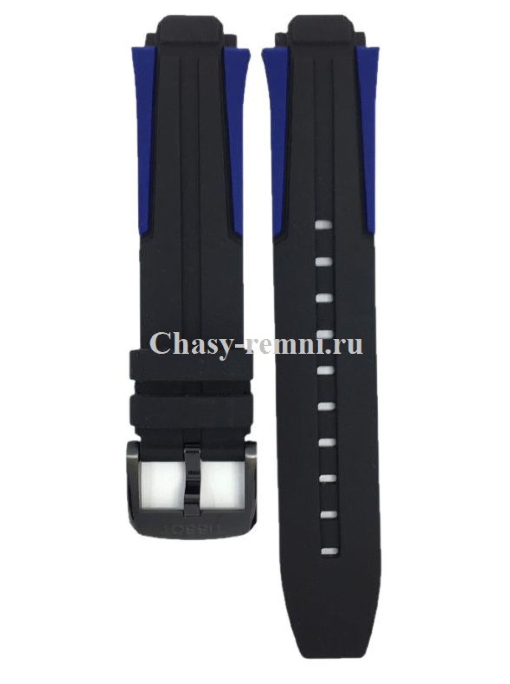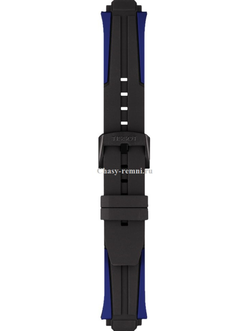 Оригинальный черный/синий каучуковый ремешок TISSOT, интегрированный под корпус, черная пряжка. T-RACE CYCLING.