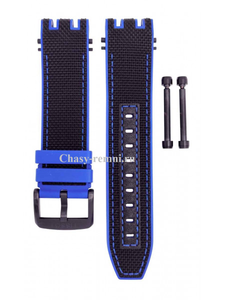 Оригинальный текстильный синий ремешок TISSOT, с втулками крепления ремешка, интегрированный под корпус, имитация крокодила, с каучуковой подложкой, черная пряжка. T-RACE MOTO GP. Размер входящий в корпус и на пряжку 22/22 мм. Длина 75*115 мм.
