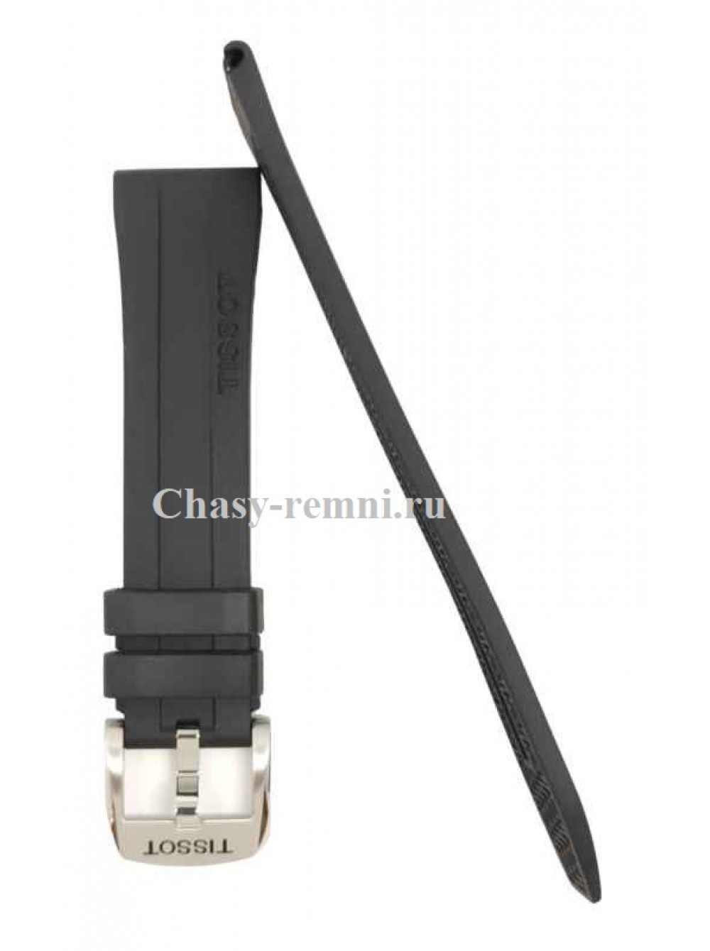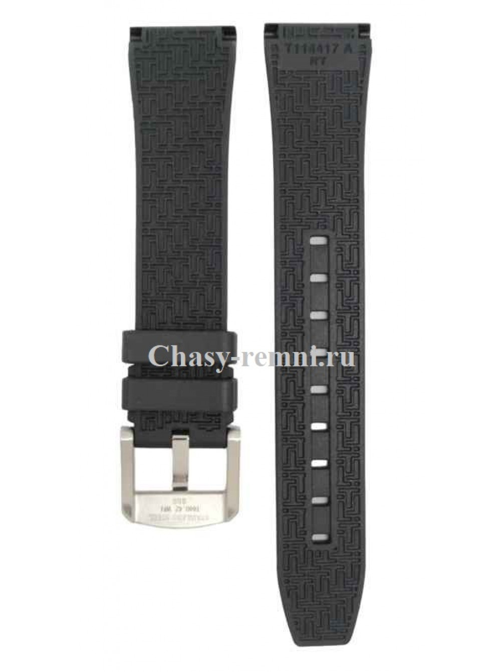 Оригинальный черный, каучуковый ремешок TISSOT, с логотипом, со стальной пряжкой. Размер ремешка входящий в корпус и на пряжку 20/17 мм. Длина 75*115 мм.