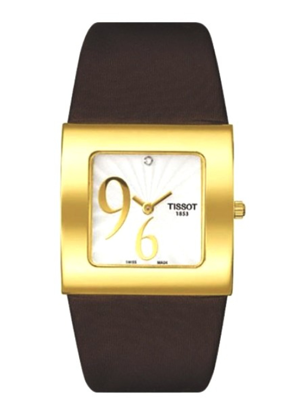 Оригинальный коричневый, текстильный ремешок TISSOT, с желтой пряжкой. NUBYA. Размер входящий в корпус и на пряжку 26/18 мм.