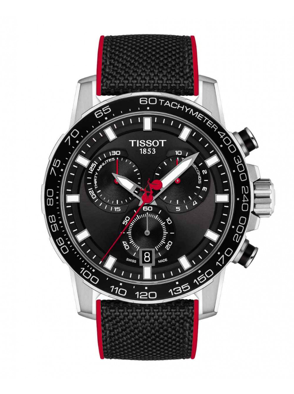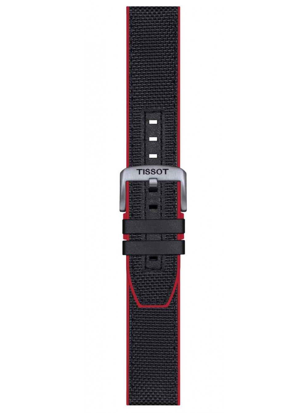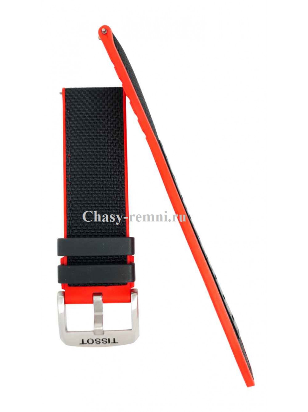 Оригинальный красный, каучуковый с черной текстильной вставкой ремешок TISSOT, со стальной пряжкой. SUPERSPORT CHRONO QUARTZ. Размер входящий в корпус и на пряжку 22/22 мм. Длина 70*115 мм.