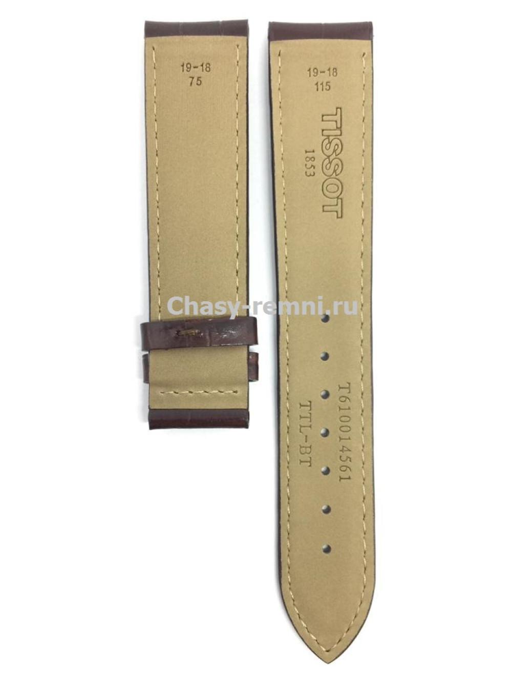 Оригинальный кожаный, коричневый ремешок TISSOT PRC200, имитация крокодила, без замка, под клипсу. Размер входящий в корпус и на клипсу 19/18 мм. Длина ремешка 75*115 мм.