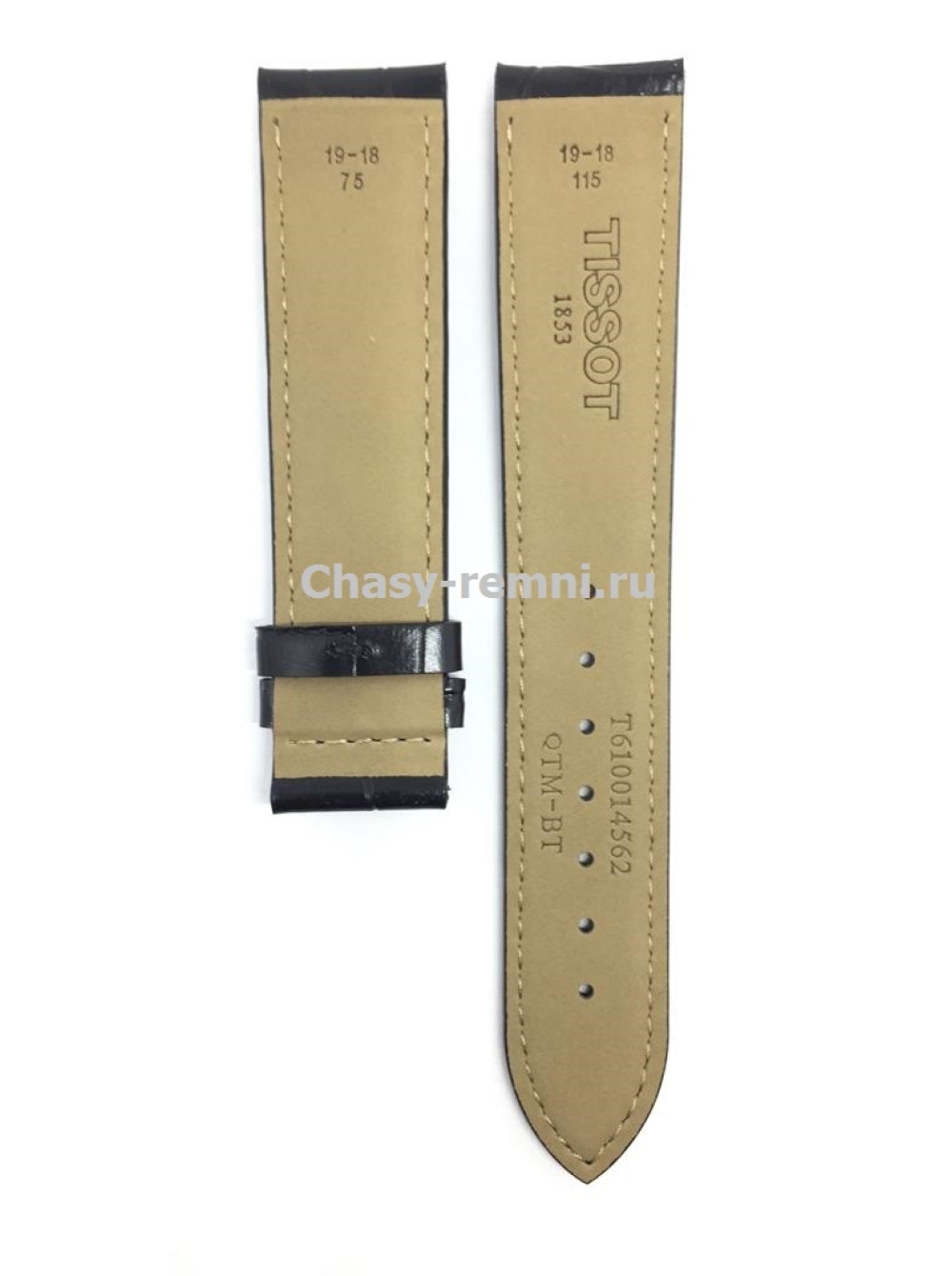 Оригинальный кожаный, черный ремешок TISSOT, имитация крокодила, без клипсы, PRC 200. Размер входящий в корпус и на клипсу 19/18 мм. Длина ремешка 75*115 мм.