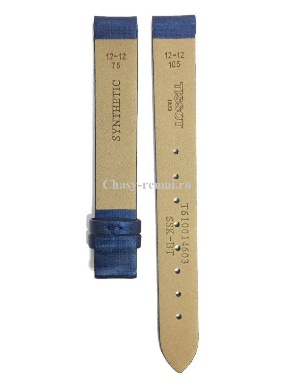 Оригинальный темно-синий, сатиновый ремешок TISSOT, без клипсы. FLOWER POWER. Размер входящий в корпус и на клипсу 12/12 мм. Длина ремешка 75*105 мм.