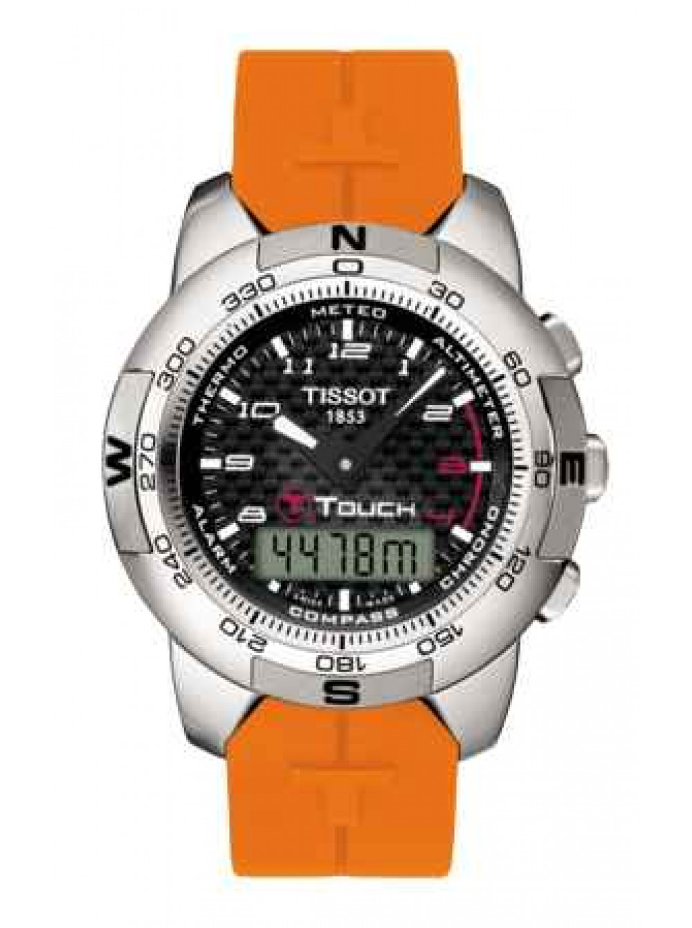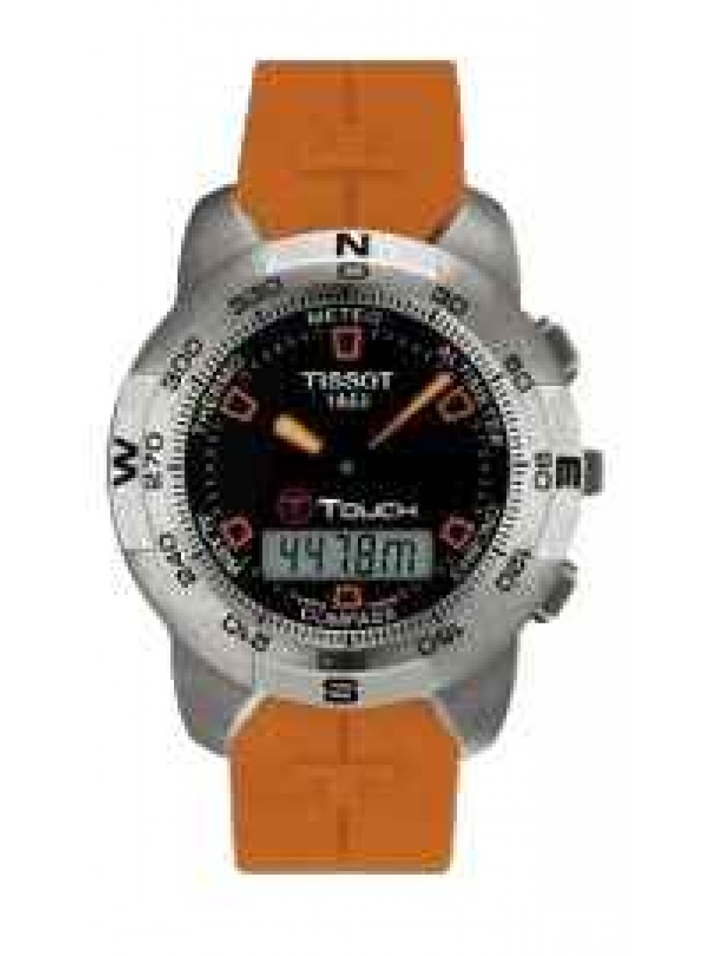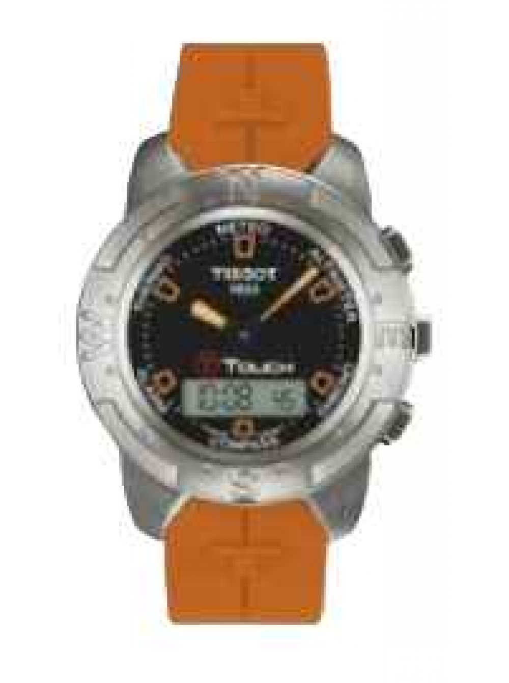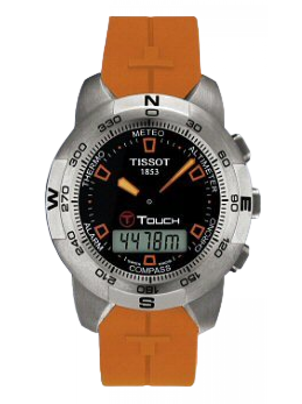 Оригинальный оранжевый, каучуковый ремешок TISSOT, интегрированный под корпус, без клипсы. T-TOUCH.