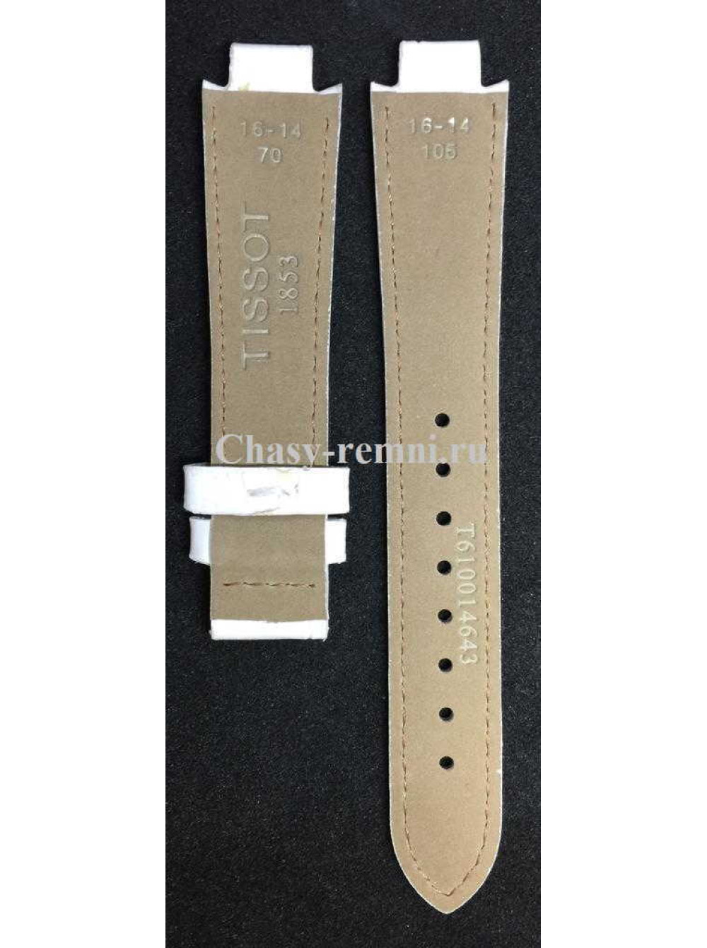 Оригинальный белый, кожаный ремешок TISSOT, интегрированный под корпус, имитация крокодила, без клипсы. TXL&TXS. Размер входящий в корпус и на клипсу 16/14 мм. Длина ремешка 70*105 мм.