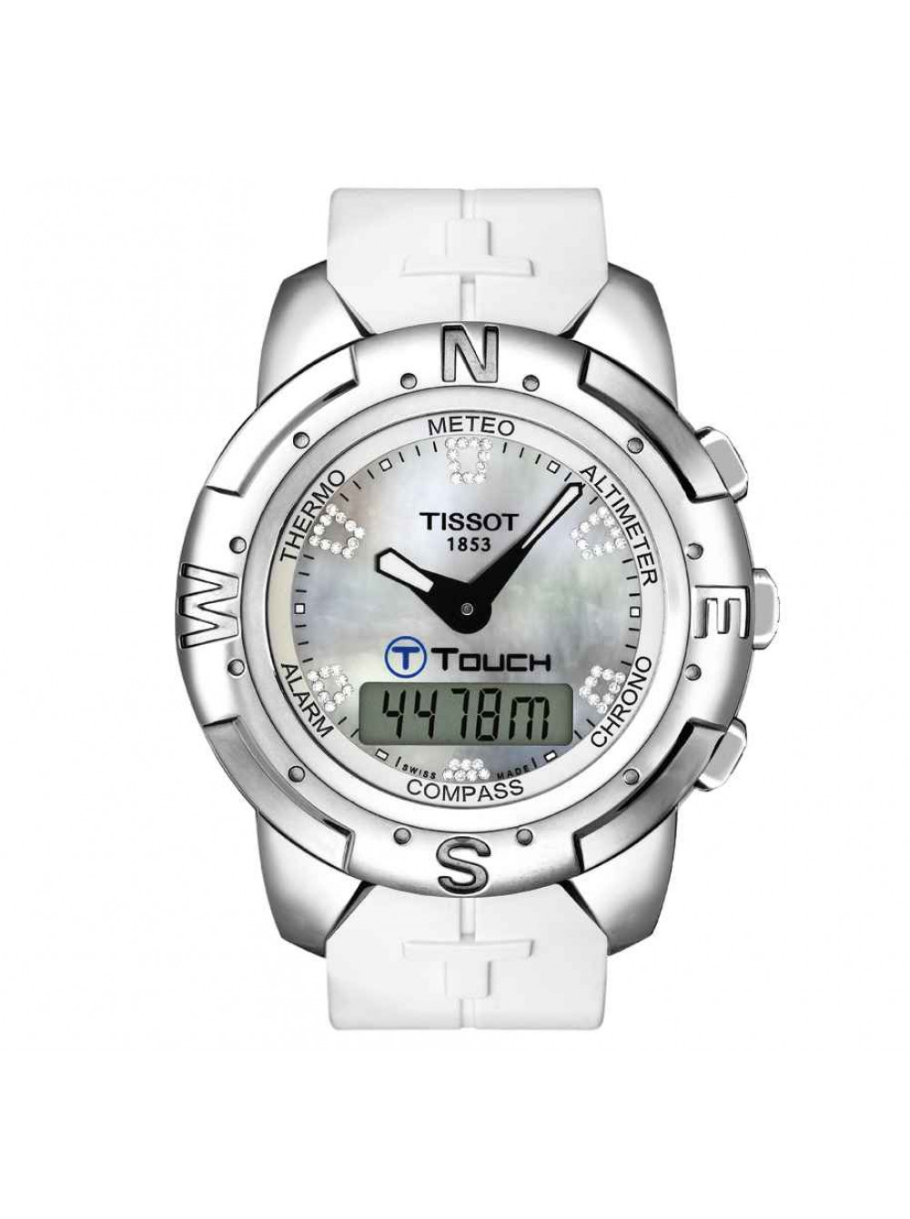 Оригинальный белый, каучуковый ремешок TISSOT, интегрированный под корпус, без клипсы. T-TOUCH. Размер ремешка входящий в корпус и на клипсу 20/18 мм. Длина 75*90 мм.