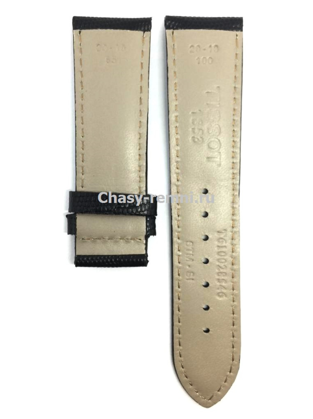 Оригинальный кожаный, черный ремешок TISSOT, без клипсы, PRC 200. Размер входящий в корпус и на клипсу 20/18 мм. Длина ремешка 65*100 мм.