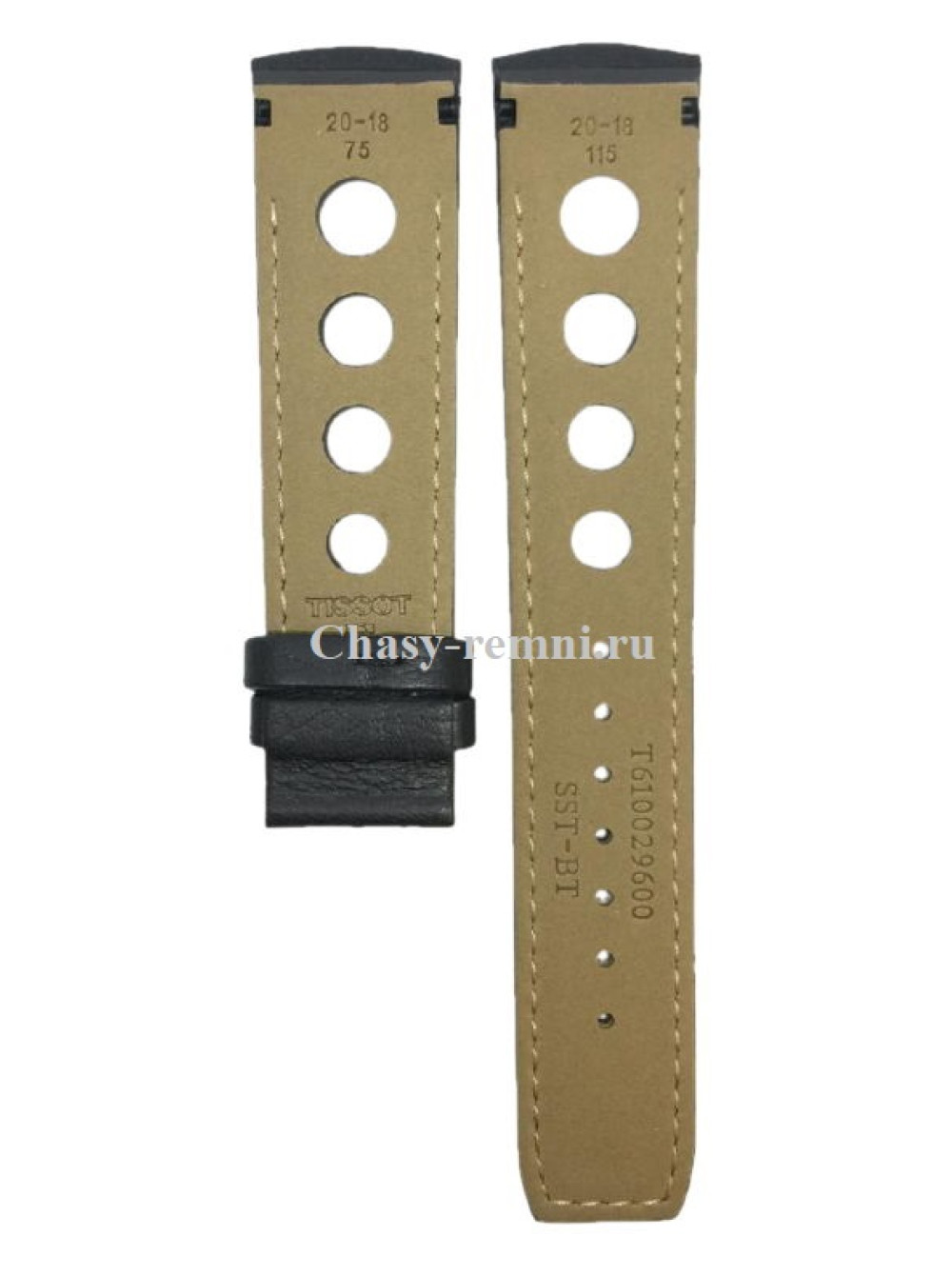 Оригинальный черный, кожаный ремешок TISSOT, интегрированный под корпус, с отверстиями, без клипсы. PRS 516. Размер ремешка входящий в корпус и на клипсу 20/18 мм. Длина ремешка 75*115 мм.