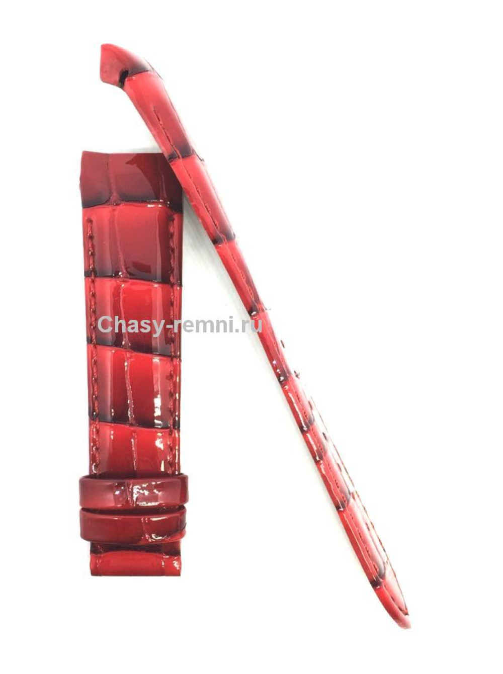 Оригинальный кожаный, красный ремешок TISSOT, имитация крокодила, интегрированный, лаковый, без замка. Длина ремешка 75*110 мм. Размер входящий в корпус и на клипсу 18/16 мм.