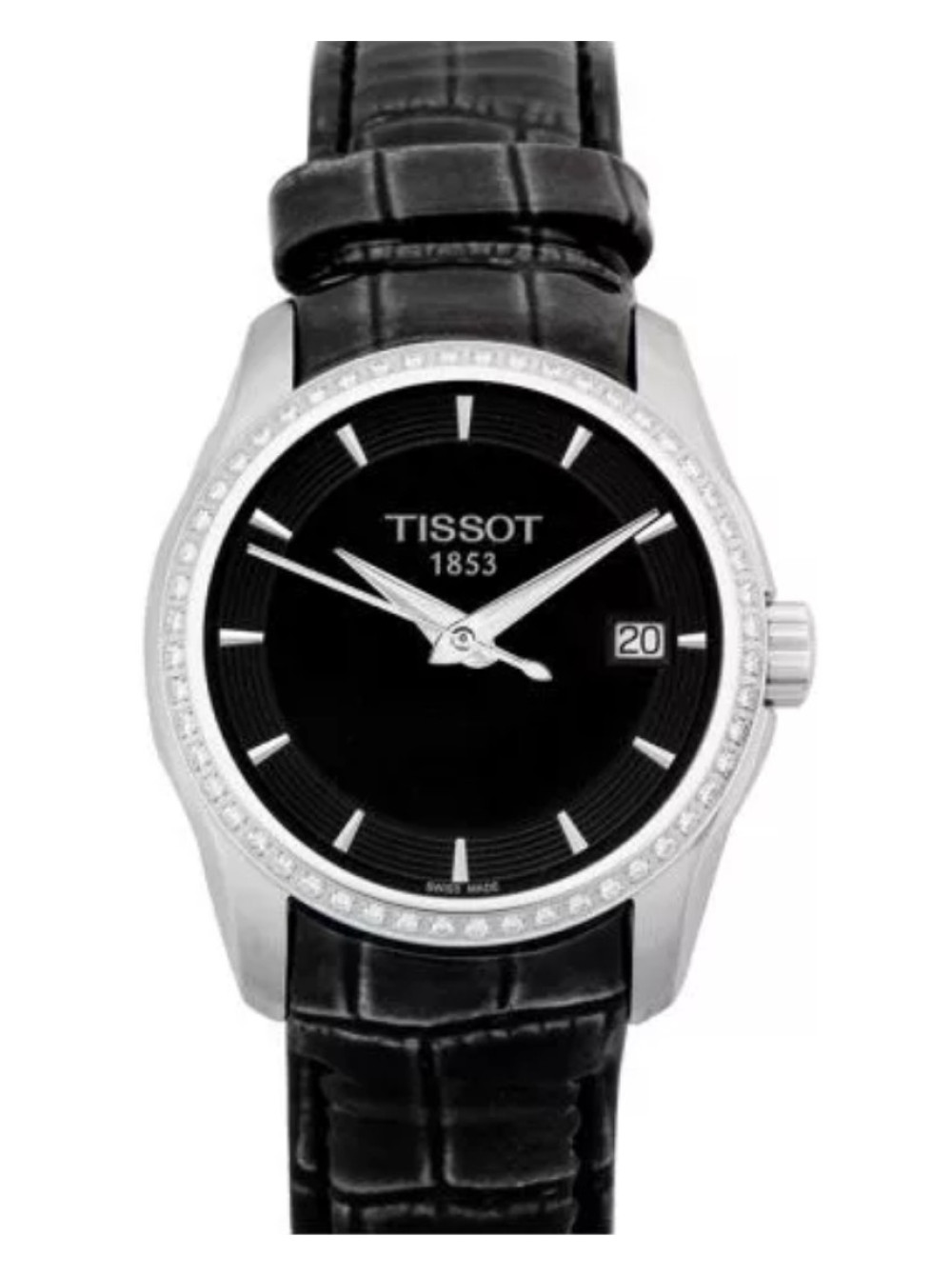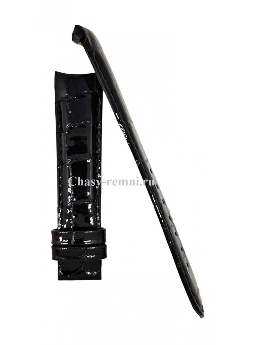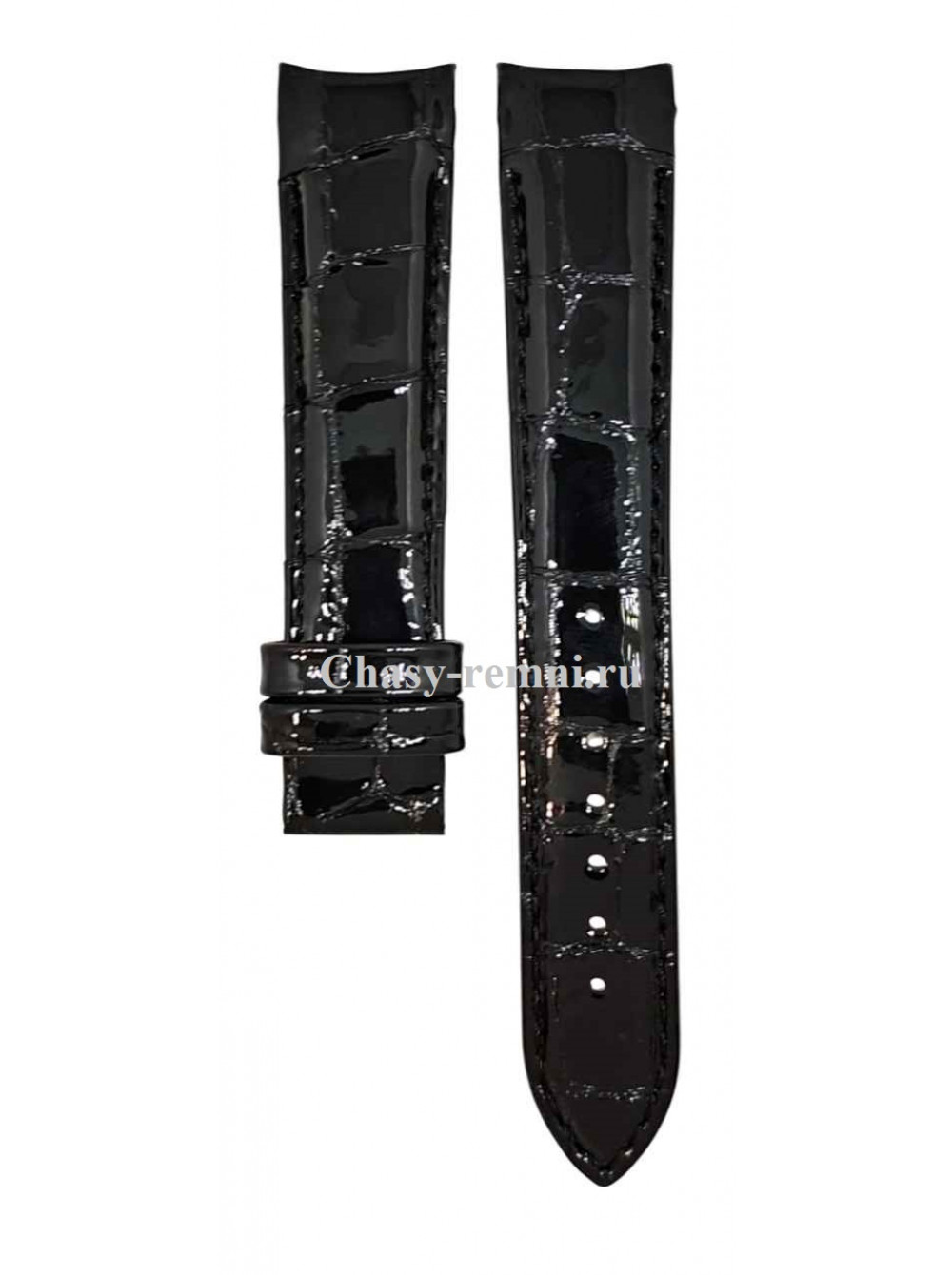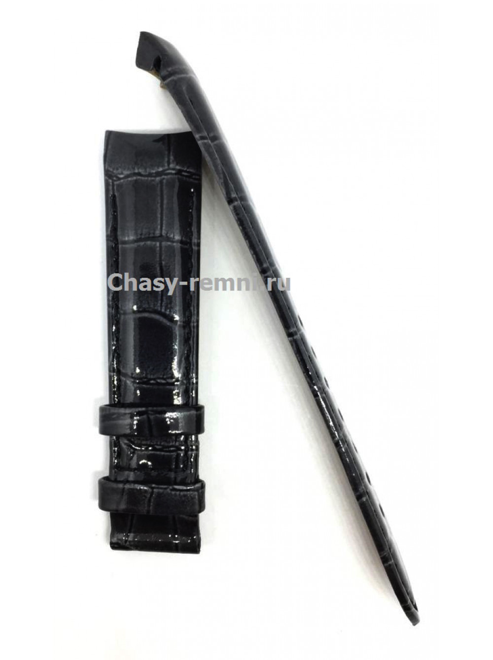 Оригинальный черный (лаковый), кожаный ремешок TISSOT, имитация крокодила, интегрированный под корпус, без клипсы. Длина ремешка 75*110 мм. Размер входящий в корпус и на клипсу 18/16 мм.