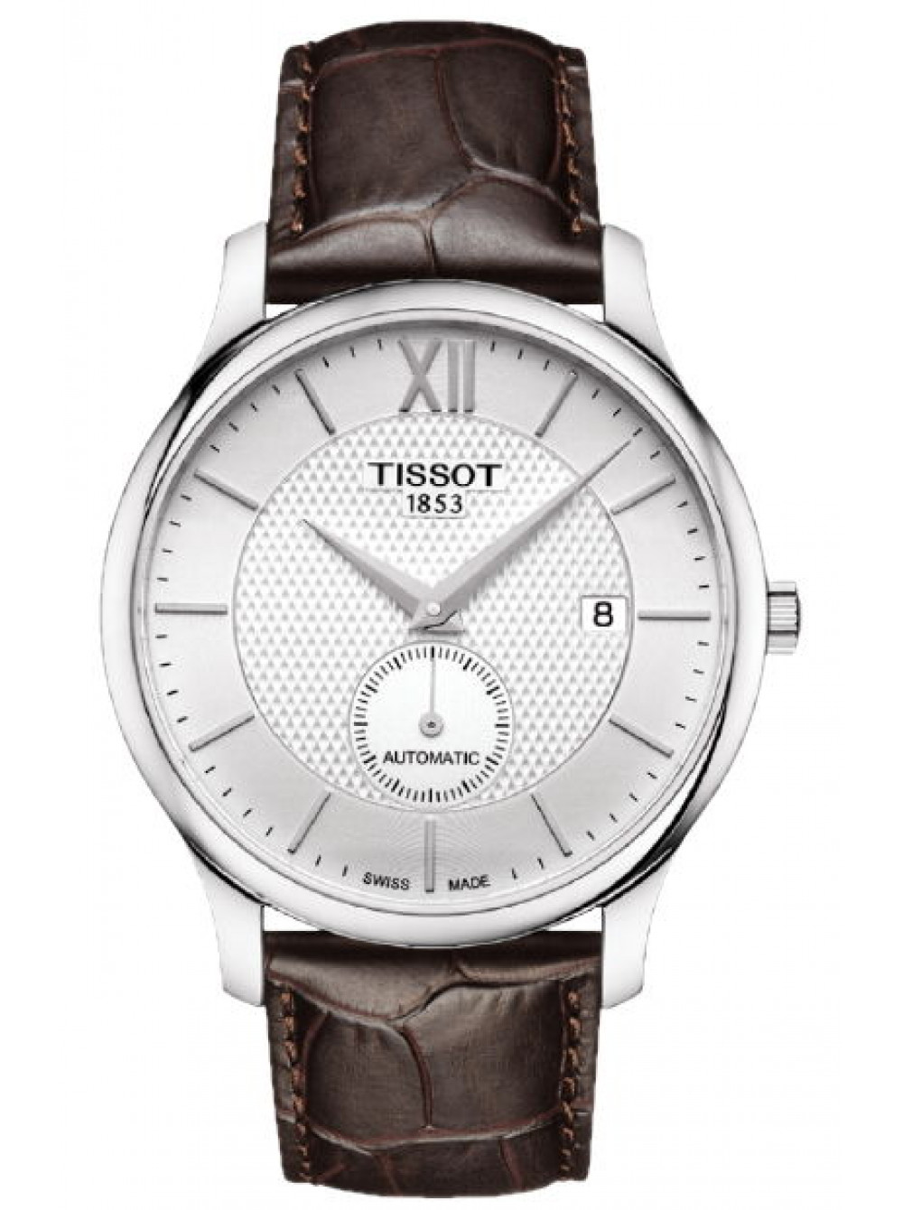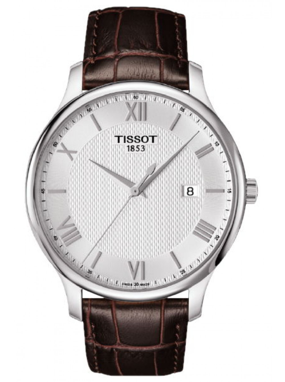 Оригинальный темно-коричневый, кожаный ремешок TISSOT, имитация крокодила, удлиненный XL, без клипсы, TRADITION. Размер ремешка входящий в корпус и на клипсу 20/18 мм. Длина ремешка 80*125 мм.