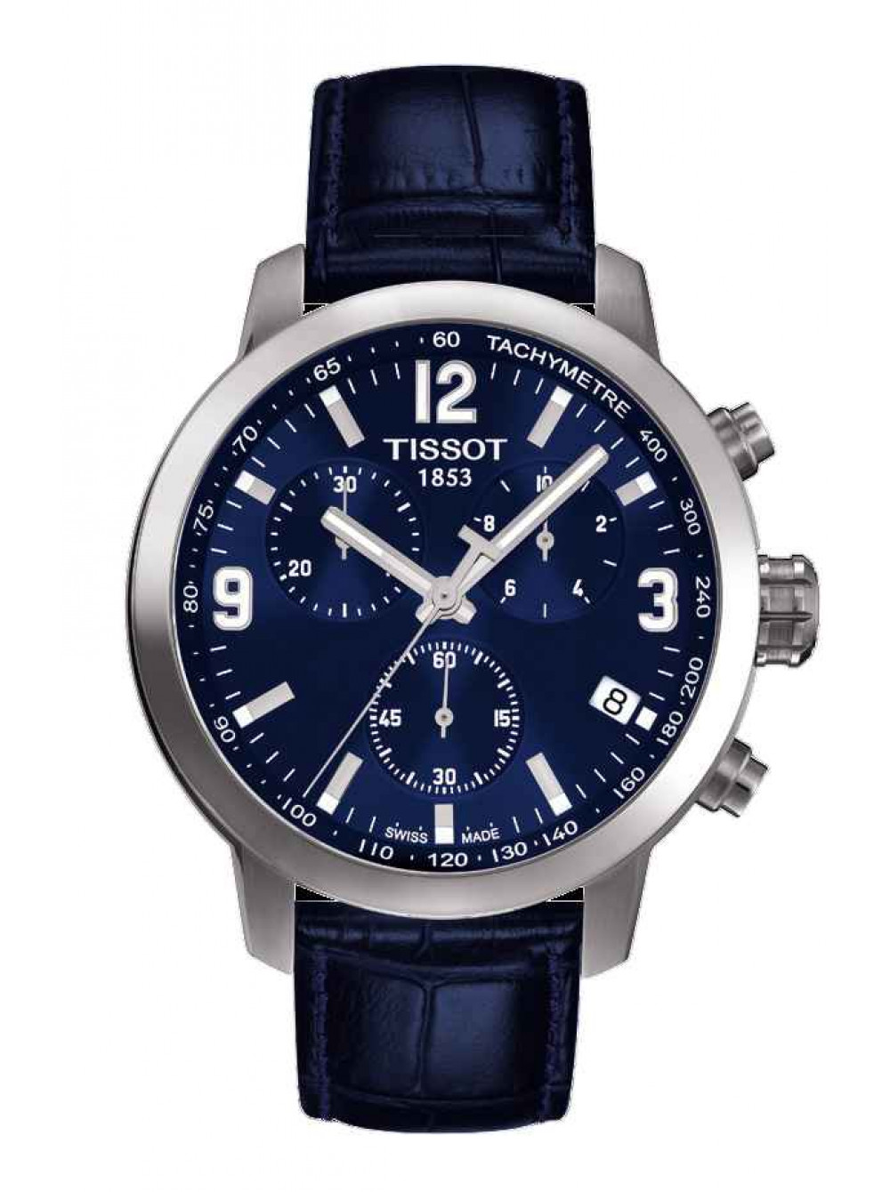Оригинальный синий, кожаный ремешок TISSOT, имитация крокодила, без клипсы. PRC 200. Размер входящий в корпус и на клипсу 19/18 мм. Длина ремешка 75*120 мм.