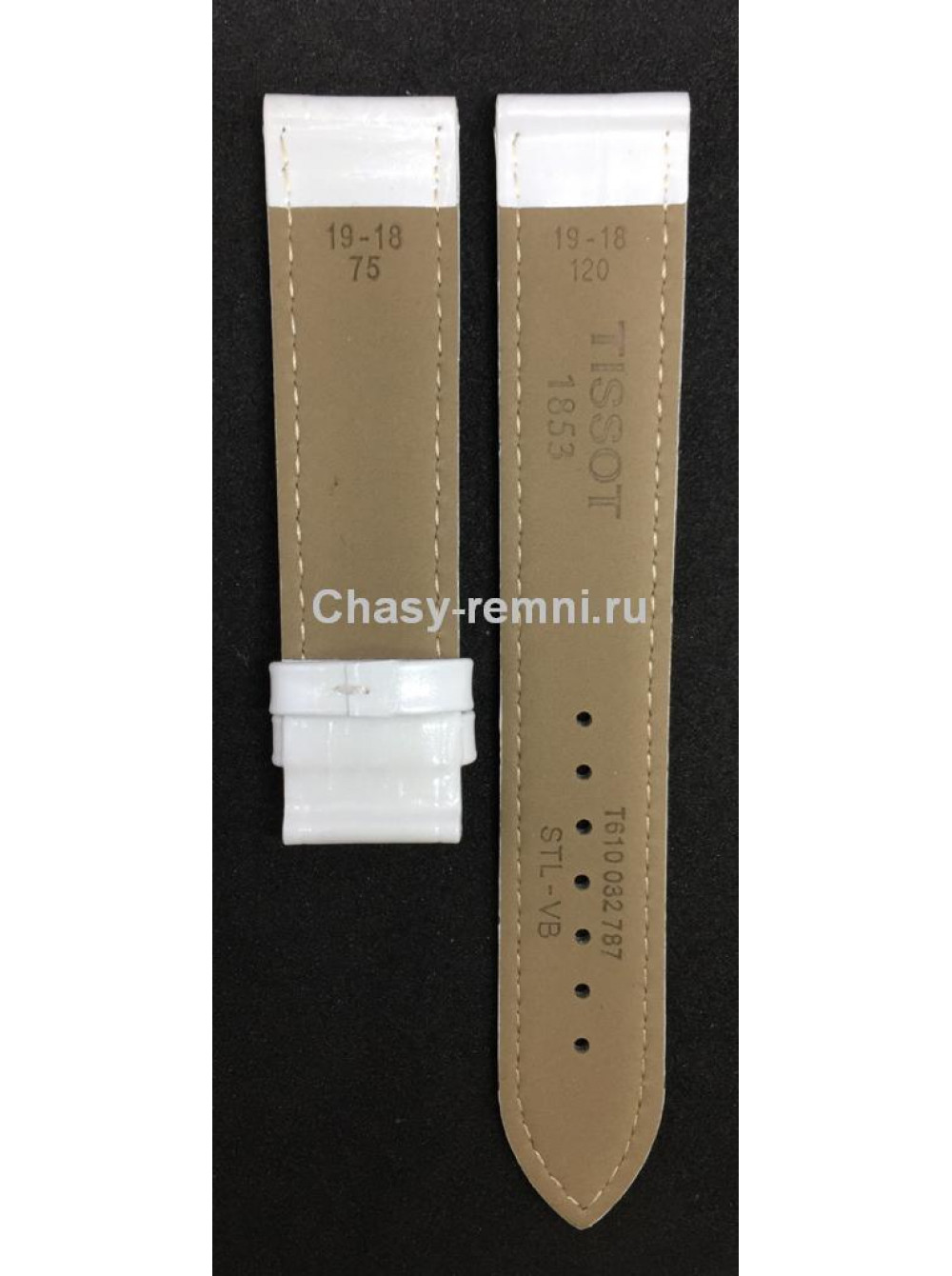 Оригинальный белый, кожаный ремешок TISSOT PRC 200, имитация крокодила, лаковый, без замка. Размер входящий в корпус и на клипсу 19/18 мм. Длина ремешка 75*120 мм.
