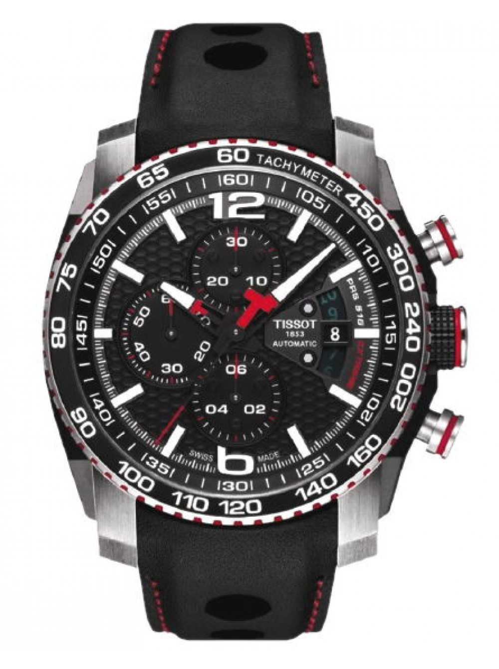 Оригинальный черный, кожаный ремешок TISSOT, гладкий, интегрированный под корпус, красная прострочка, с отверстиями, без клипсы. PRS 516. Размер ремешка входящий в корпус и на клипсу 23/20 мм. Длина ремешка 70*110 мм.