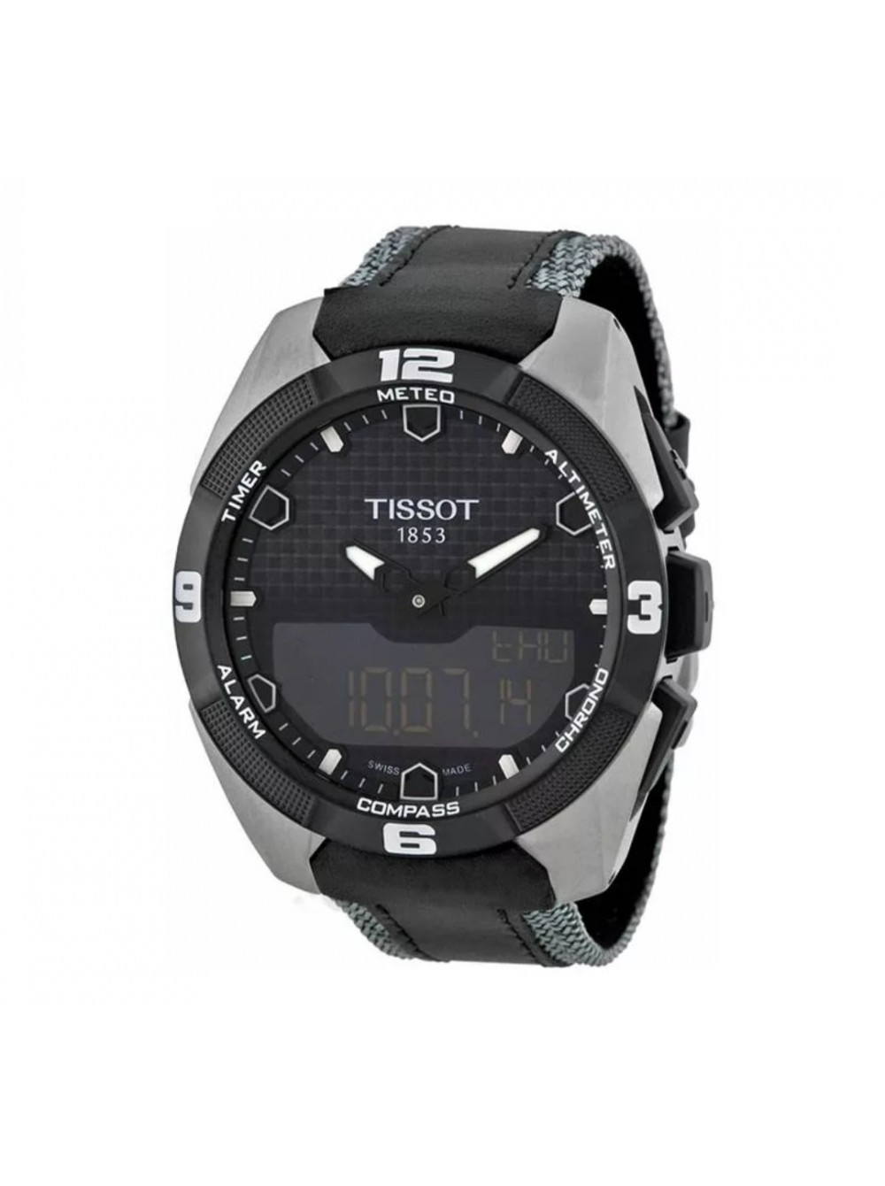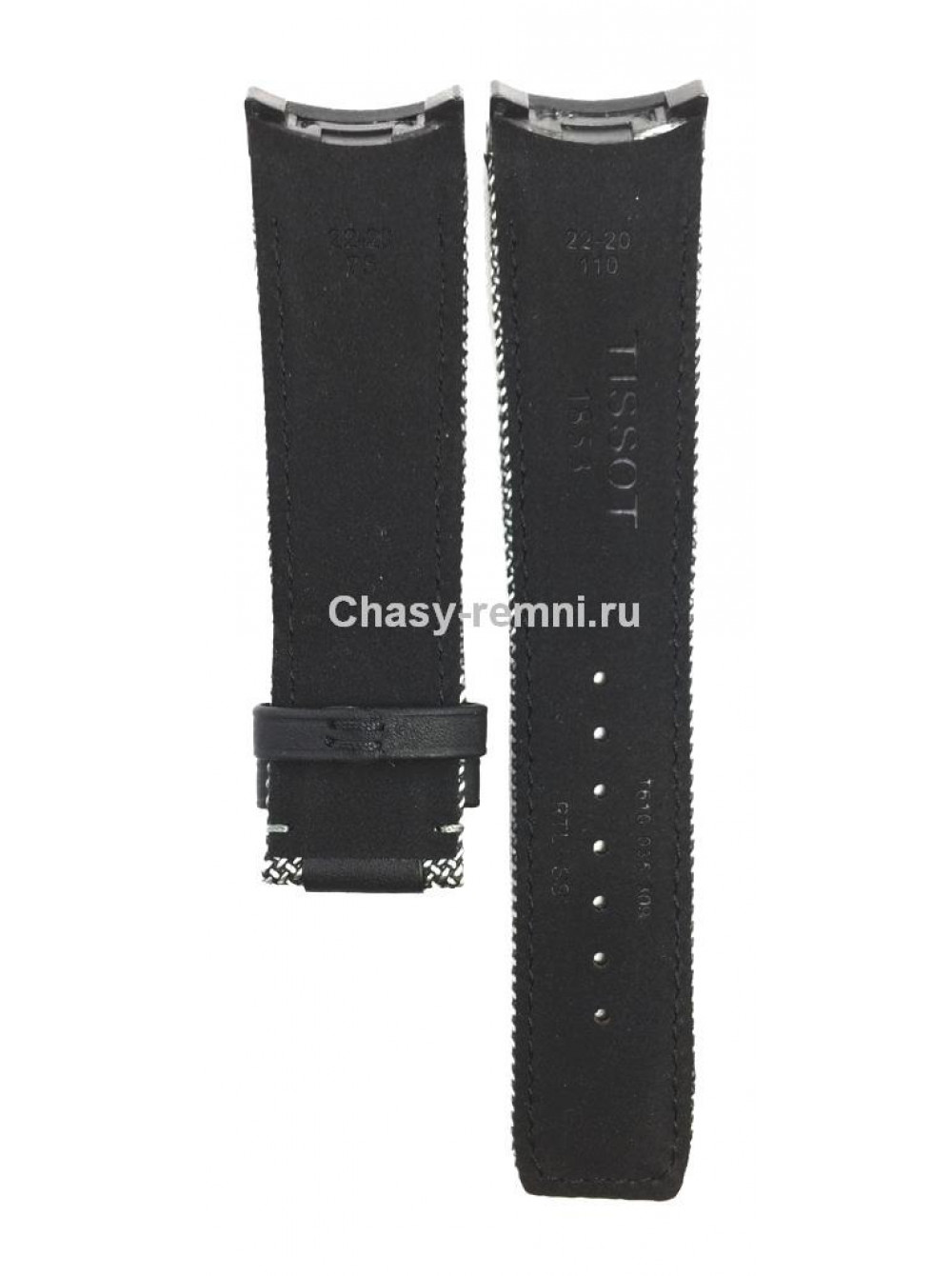 Оригинальный черный, кожаный ремешок TISSOT, гладкий, интегрированный под корпус, с серыми вставками, без клипсы, T-TOUCH SOLAR. Длина ремешка 75*110 мм. Размер входящий в корпус и на клипсу 22/20 мм.