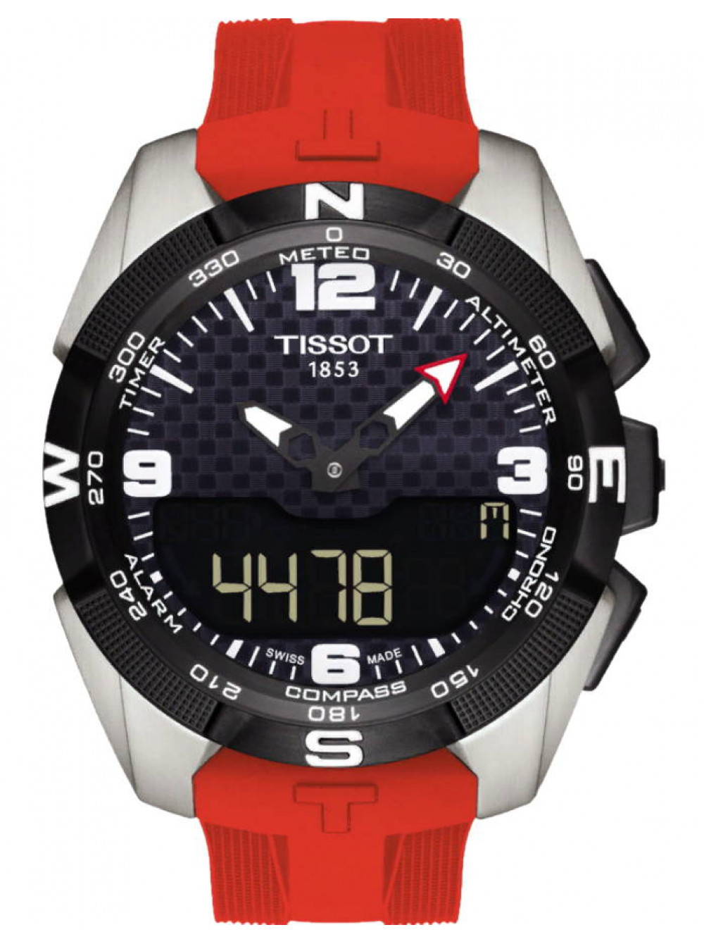 Оригинальный красный, силиконовый ремешок TISSOT, интегрированный под корпус, без клипсы. T-TOUCH SOLAR.