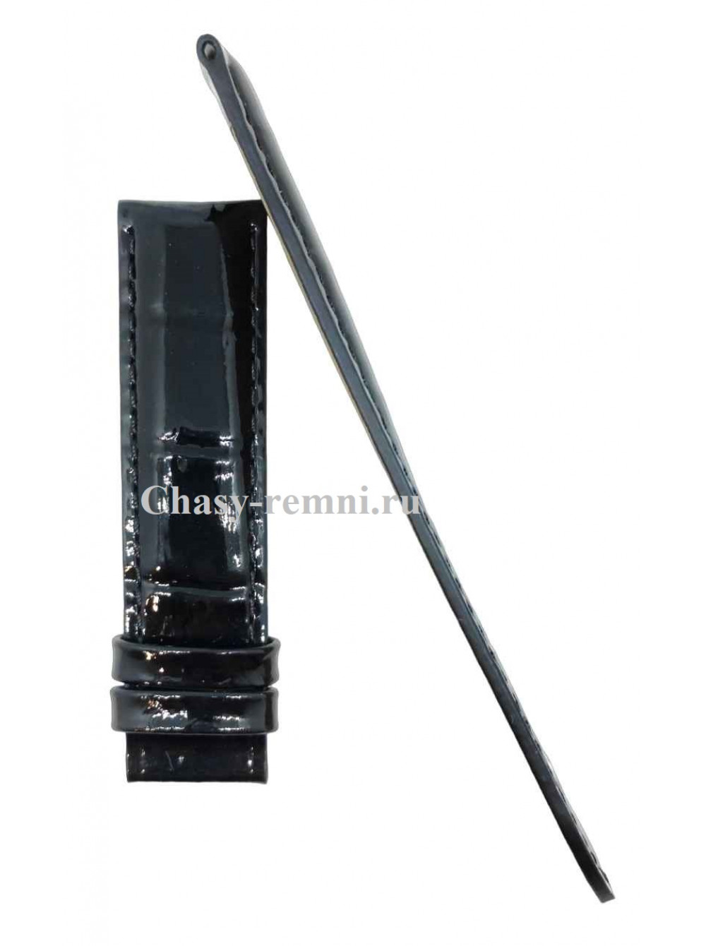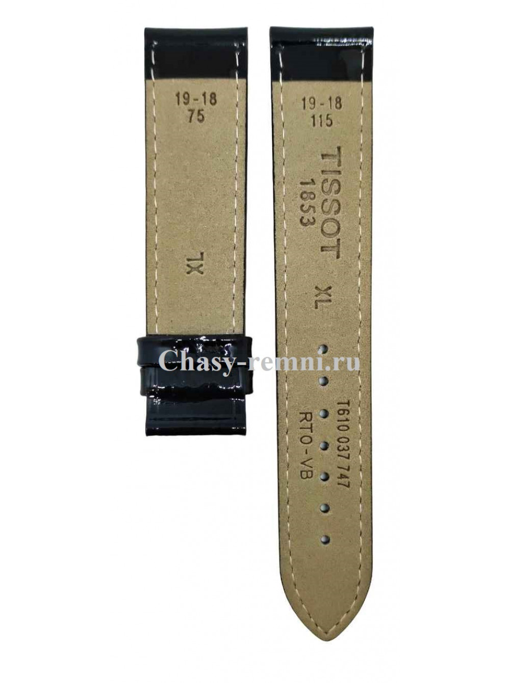 Оригинальный черный, кожаный ремешок TISSOT, лаковый, имитация крокодила, без клипсы. LE LOCLE. Удлиненный XL. Размер ремешка входящий в корпус и на пряжку 19/18 мм. Длина 75*115 мм.