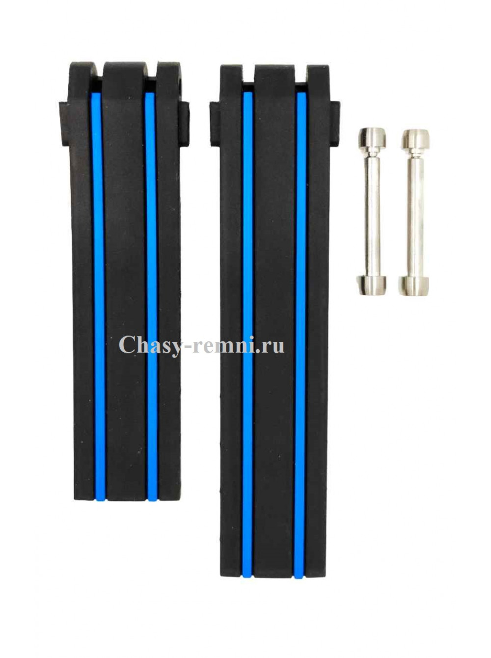Оригинальный черный/синий, каучуковый ремешок TISSOT, интегрированный под корпус, без клипсы. T-RACE. Размер входящий в корпус и на клипсу 20/20 мм. Длина 75*90 мм.