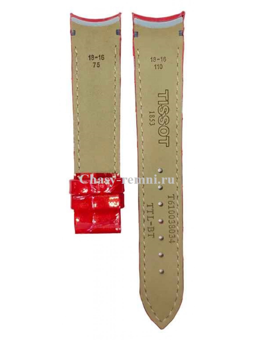 Оригинальный красный, кожаный ремешок TISSOT, имитация крокодила, интегрированный под корпус, лаковый, без клипсы. COUTURIER. Размер ремешка входящий в корпус и на клипсу 18/16 мм. Длина 75*110 мм.