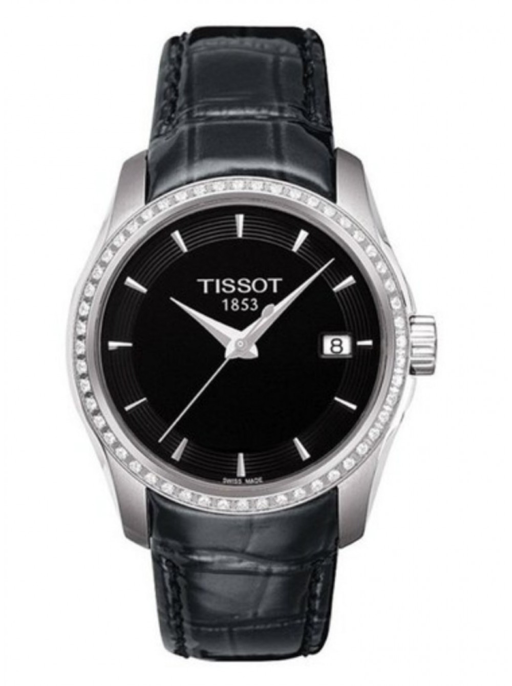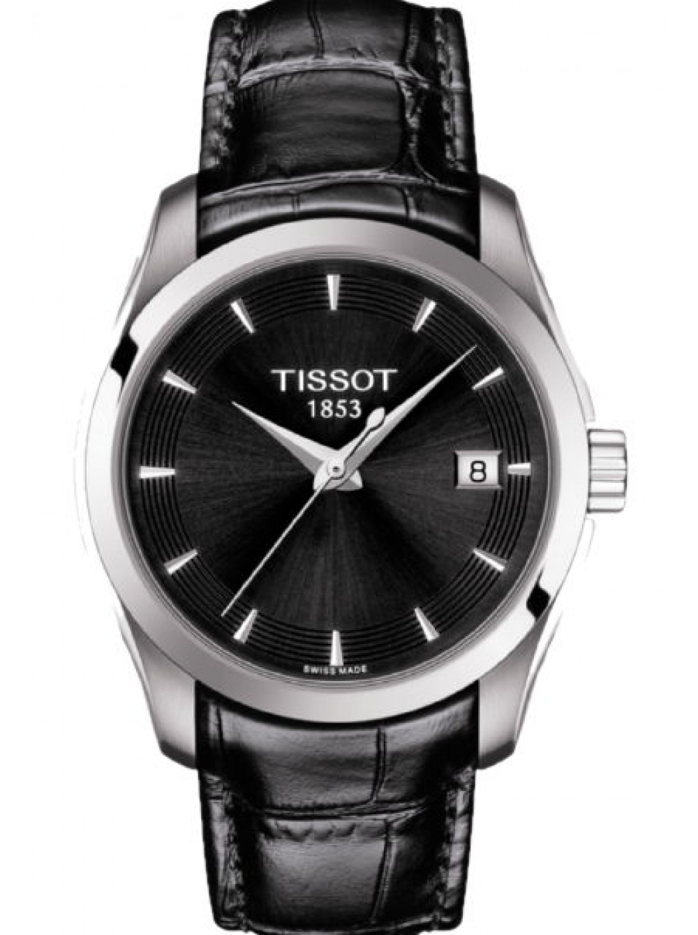 Оригинальный черный, кожаный ремешок TISSOT, интегрированный под корпус, имитация крокодила, без клипсы, COUTURIER. Длина ремешка 75*110 мм. Размер входящий в корпус и на клипсу 18/16 мм.