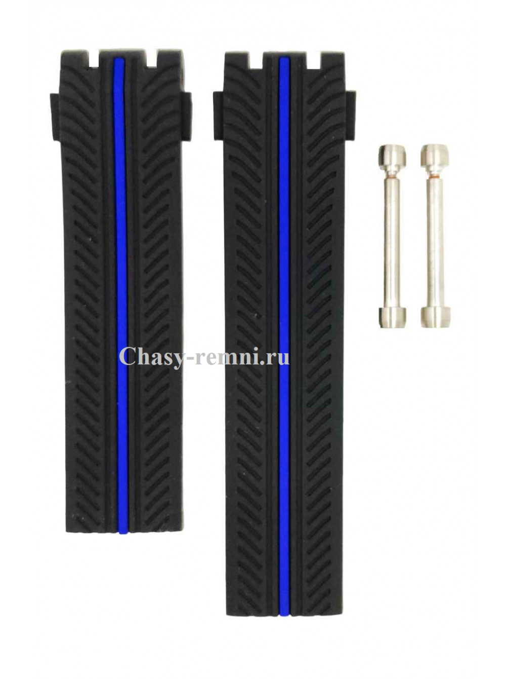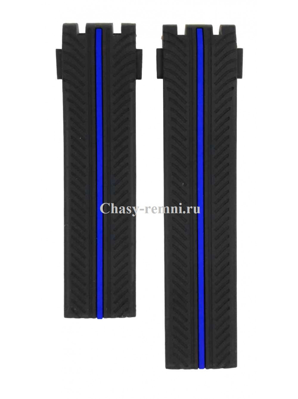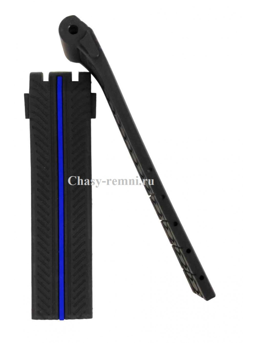 Оригинальный черный с синей полосой по центру, каучуковый ремешок TISSOT, интегрированный под корпус, без клипсы. T-RACE. Размер ремешка входящий в корпус и на клипсу 20/20 мм.