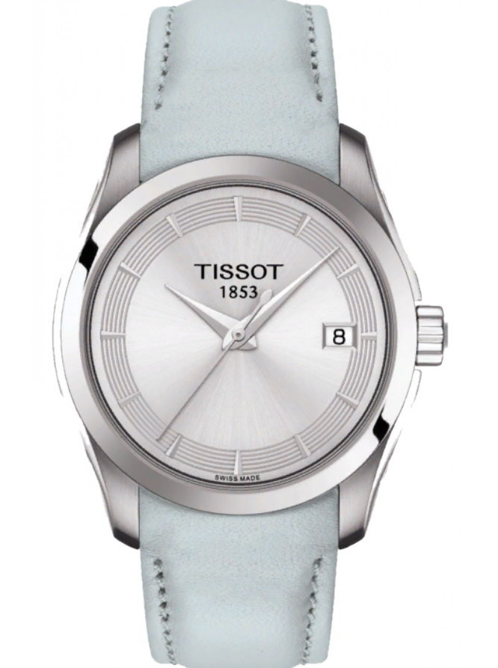 Оригинальный голубой, кожаный ремешок TISSOT, гладкий, интегрированный под корпус, без клипсы. COUTURIER. Размер входящий в корпус и на клипсу 18/16 мм. Длина ремешка 75*110 мм.