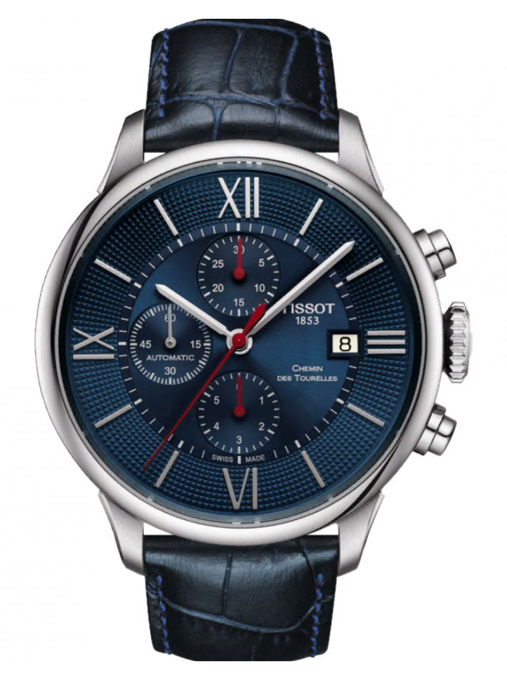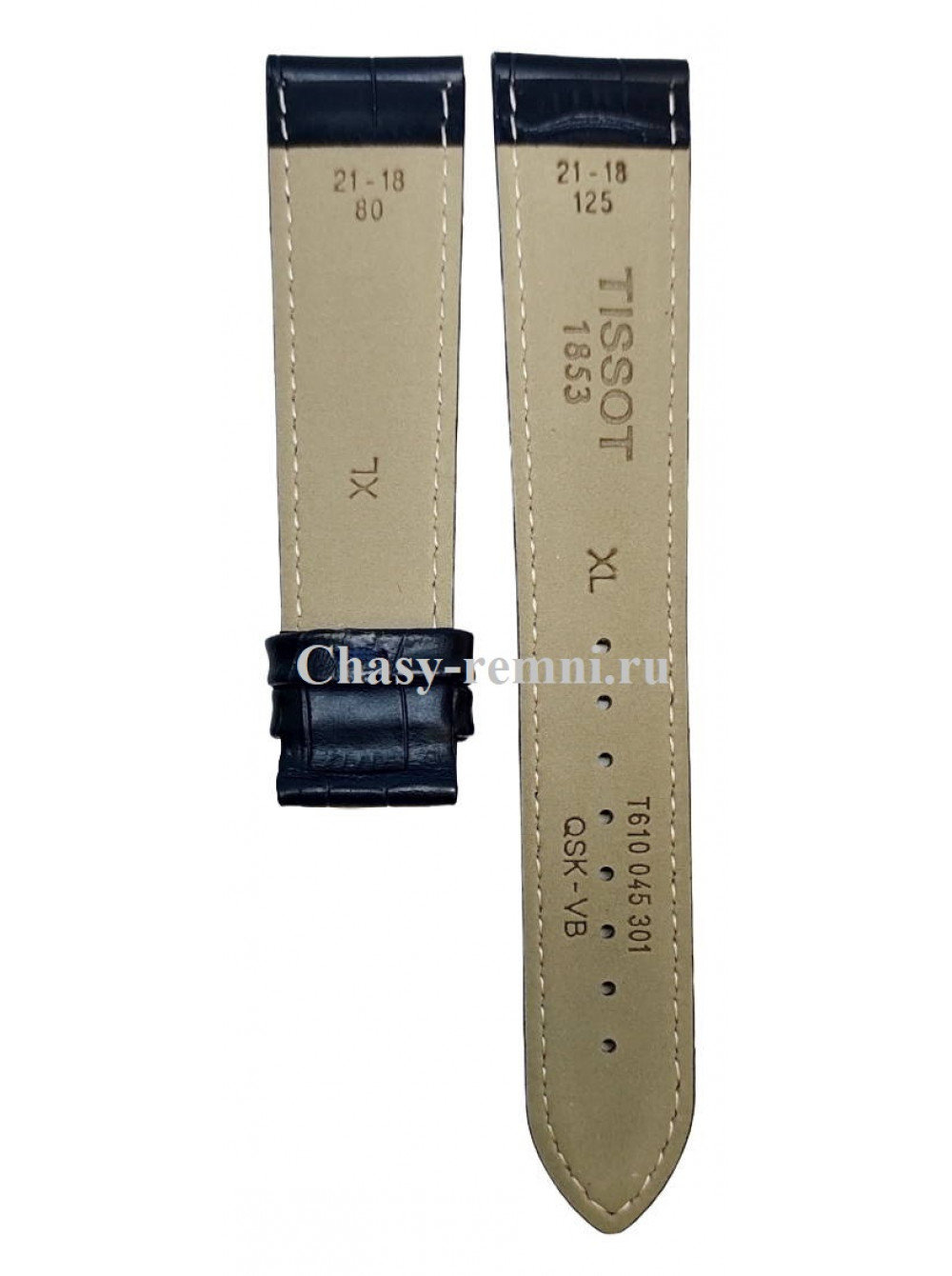 Оригинальный синий, кожаный ремешок TISSOT, имитация крокодила, удлиненный XL, без клипсы. CHEMIN DES TOURELLES. Размер входящий в корпус и на клипсу 21/18 мм. Длина ремешка 80*125 мм.