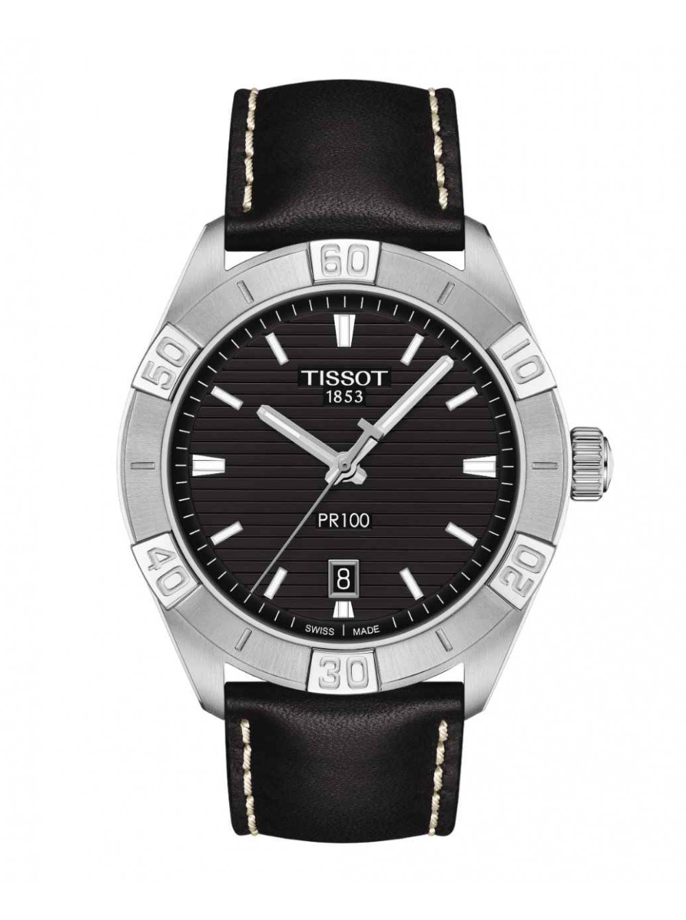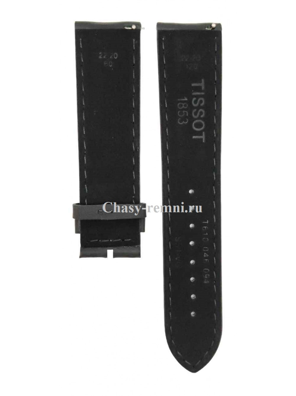 Оригинальный черный кожаный ремешок TISSOT, гладкий, с белой прострочкой, без пряжки. PR100. Размер входящий в корпус и на пряжку 22/20 мм. Длина 80*120 мм.