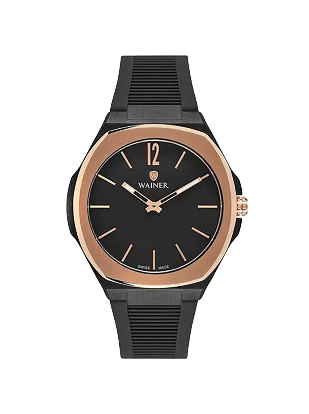 Оригинальный черный, каучуковый ремешок WAINER, интегрированный под корпус, черная пряжка. Размер ремешка входящий в корпус и на пряжку 23/18 мм. Длина ремешка 70*110 мм.