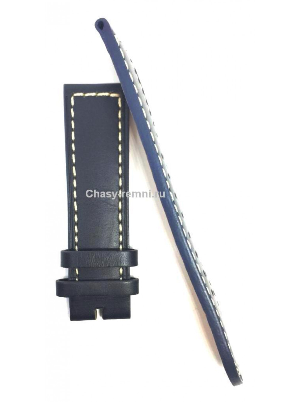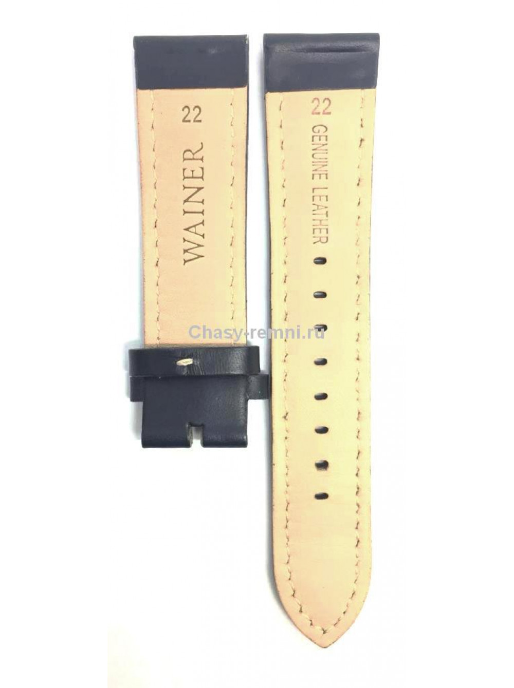 Оригинальный кожаный, синий ремешок WAINER, гладкий с белой прострочкой, без пряжки. Размер входящий в корпус и на пряжку 22/20 мм.
