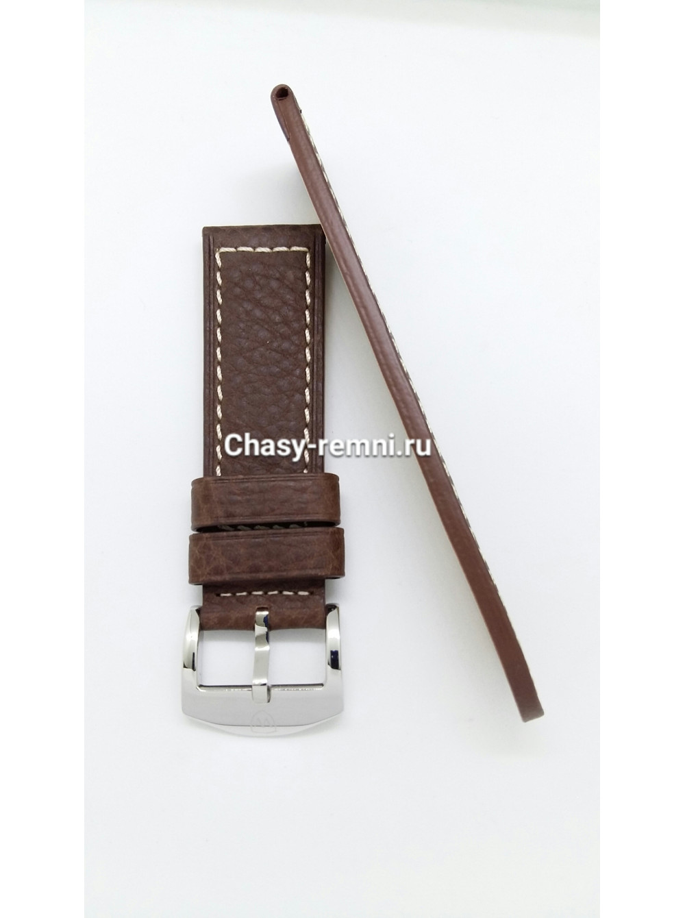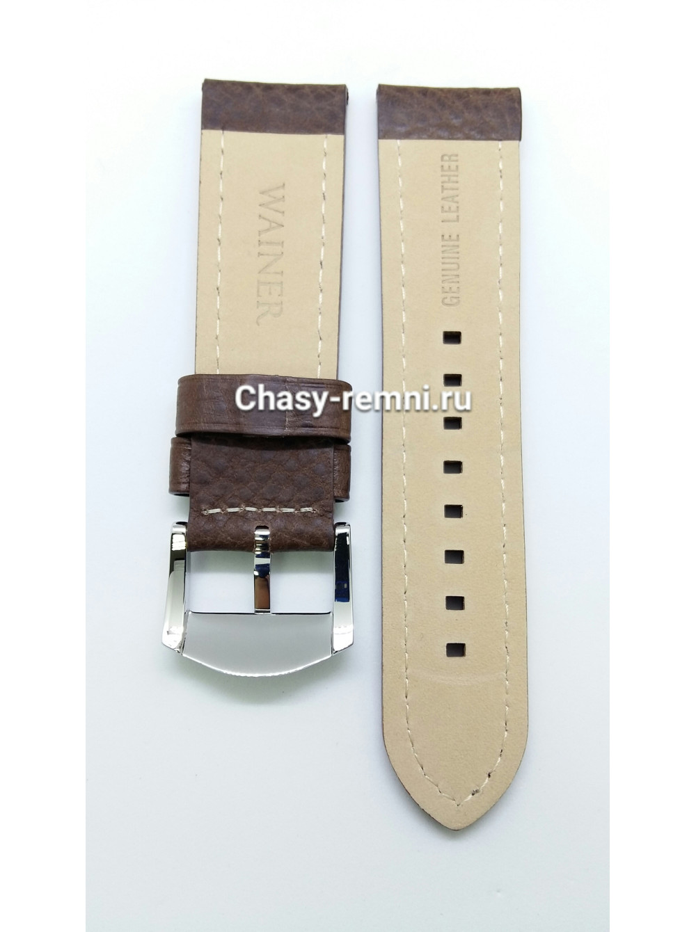 Оригинальный кожаный, коричневый ремешок WAINER, гладкий с белой прострочкой, со стальной пряжкой. Размер входящий в корпус и на пряжку 24/22 мм.