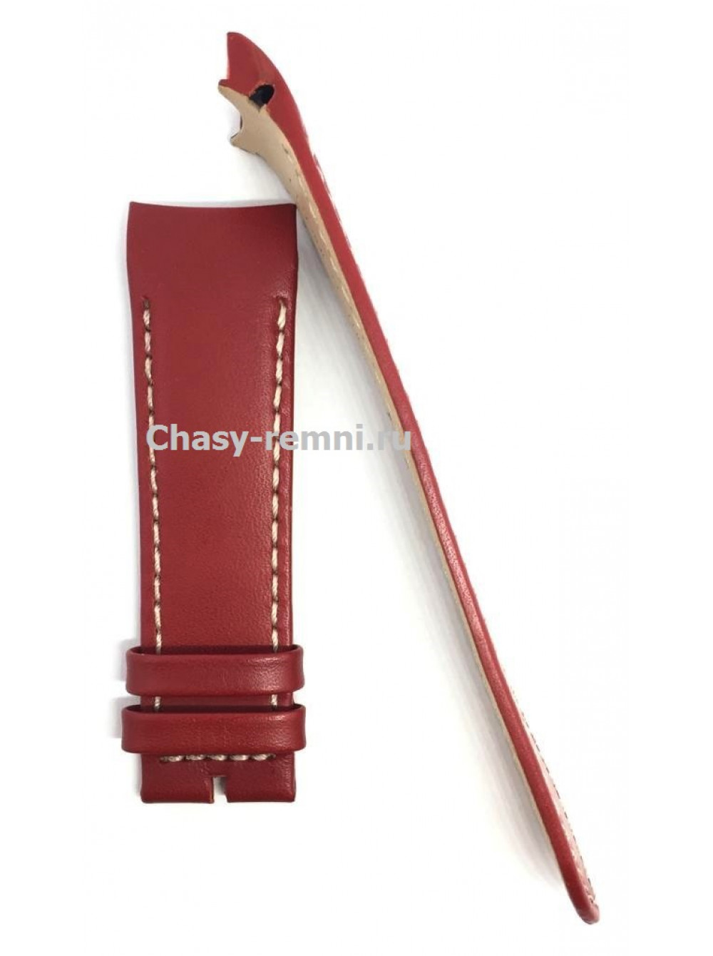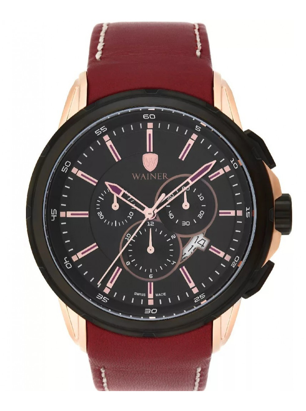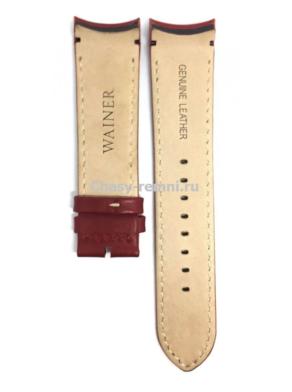 Оригинальный кожаный, бордовый ремешок WAINER, гладкий, интегрированный под корпус, без пряжки, с белой прострочкой.
