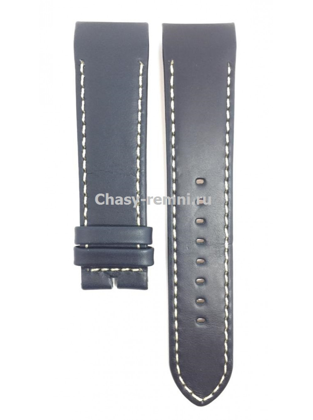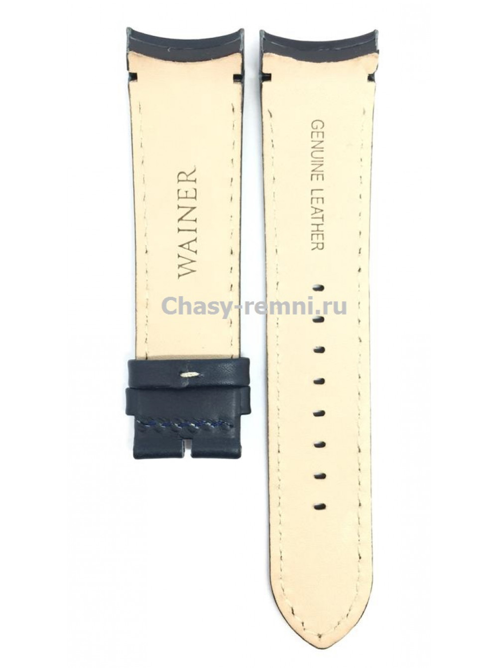 Оригинальный кожаный, темно-синий ремешок WAINER, гладкий, интегрированный под корпус, белой прострочкой, без пряжки. Размер ремешка входящий в корпус и на пряжку 24/22 мм. Длина 80*120 мм.