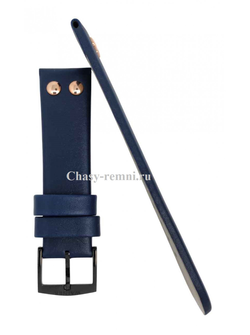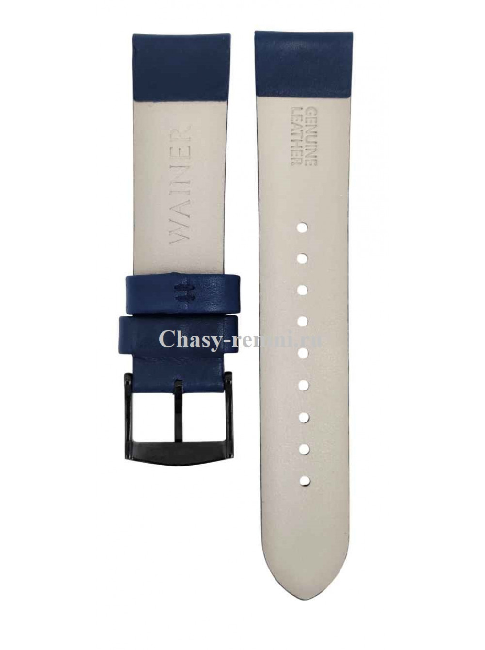 Оригинальный кожаный, темно-синий ремешок WAINER, гладкий с розовыми заклепками, черная пряжка. Размер входящий в корпус и на пряжку 22/20 мм.