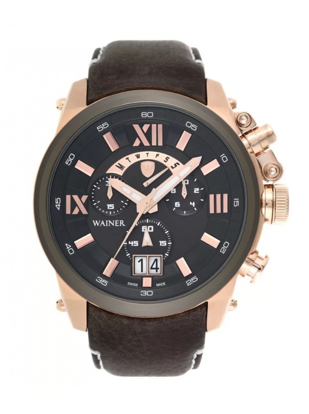 Оригинальный кожаный, серый ремешок WAINER, гладкий, без пряжки, интегрированный под корпус. Размер входящий в корпус и на пряжку 26/24 мм. Длина ремешка 75*120 мм.