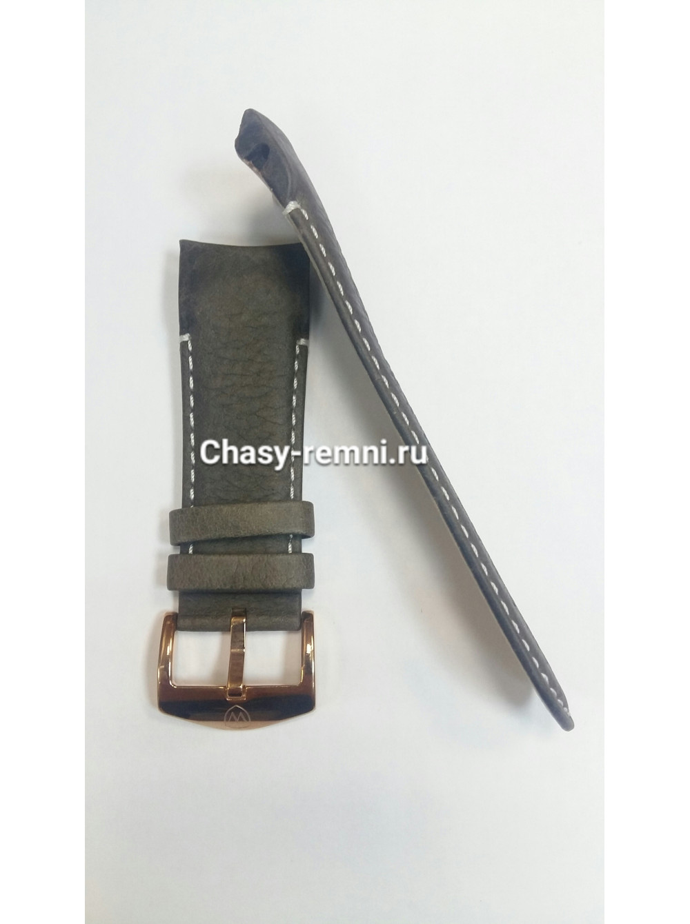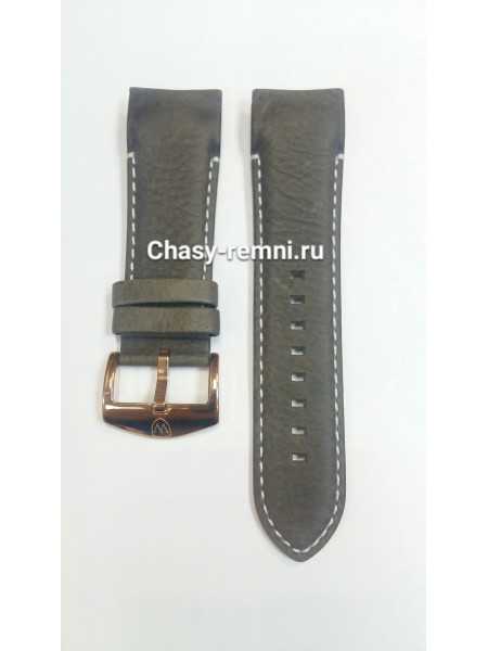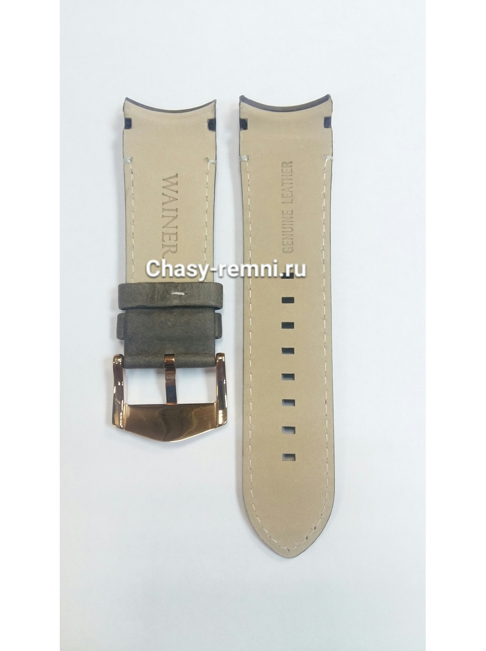 Оригинальный кожаный, серый ремешок WAINER, гладкий с розовой пряжкой, интегрированный под корпус. Размер входящий в корпус и на пряжку 26/24 мм. Длина ремешка 75*120 мм.