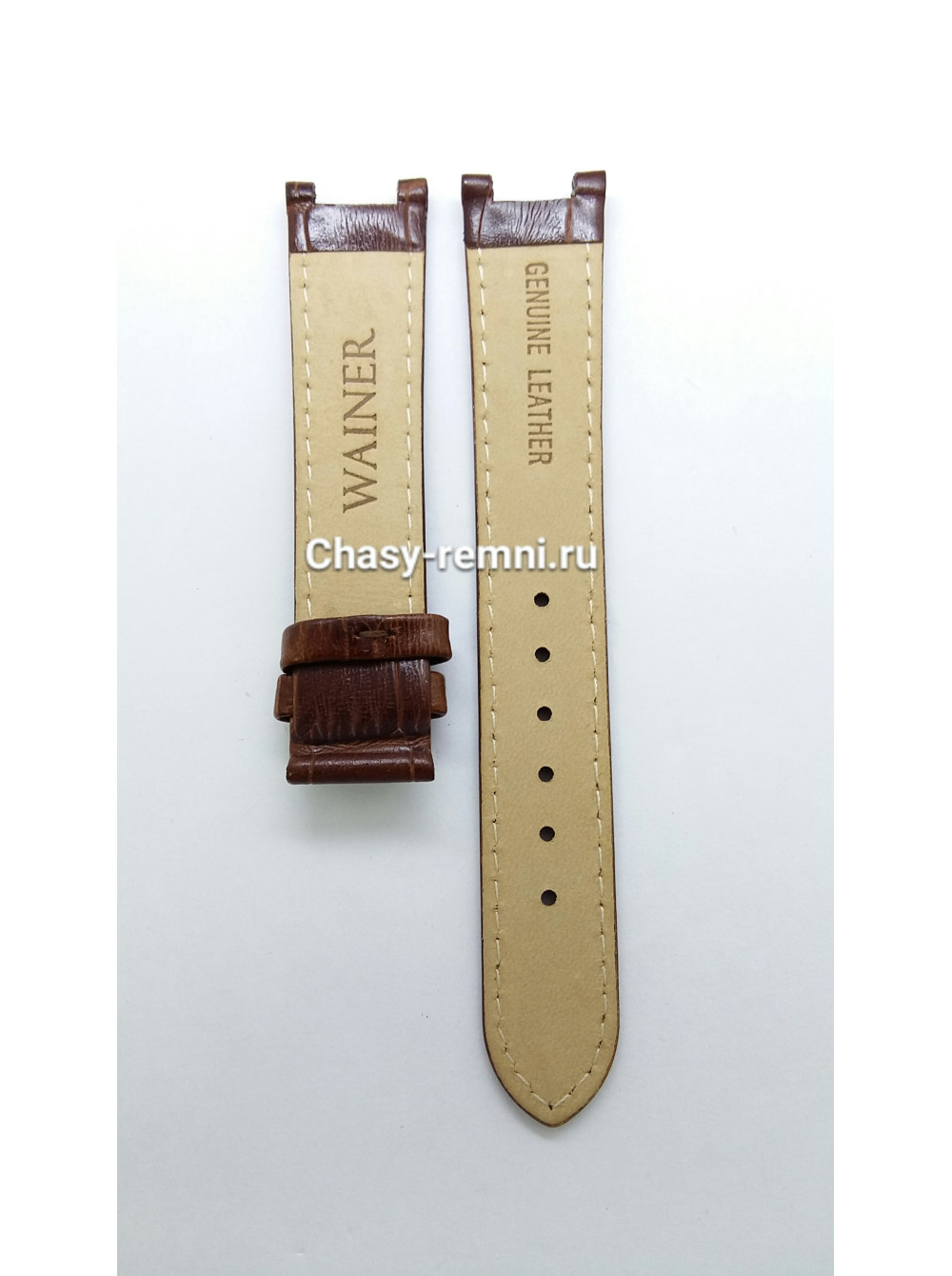 Оригинальный кожаный, темно-коричневый ремешок WAINER, имитация крокодила, с вырезом под корпус, без пряжки. Размер входящий в корпус и на пряжку 18/16 мм.