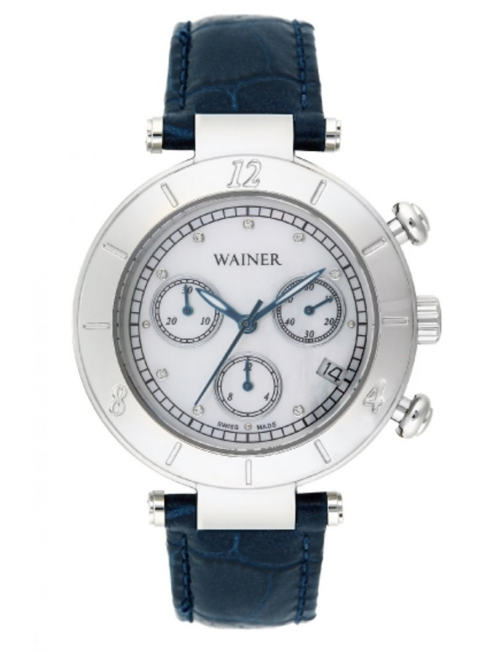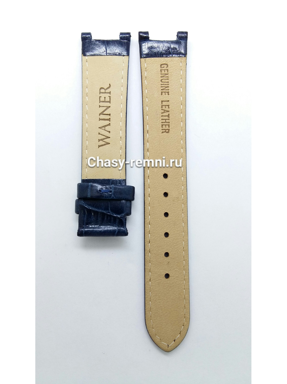 Оригинальный кожаный, синий ремешок WAINER, имитация крокодила, с вырезом под корпус, без пряжки. Размер входящий в корпус и на пряжку 18/16 мм.