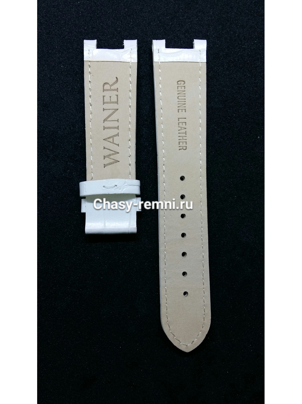 Оригинальный кожаный, белый ремешок WAINER, имитация крокодила, с вырезом под корпус, без пряжки.