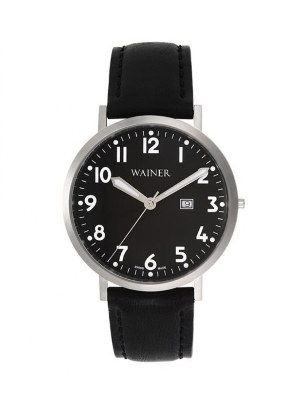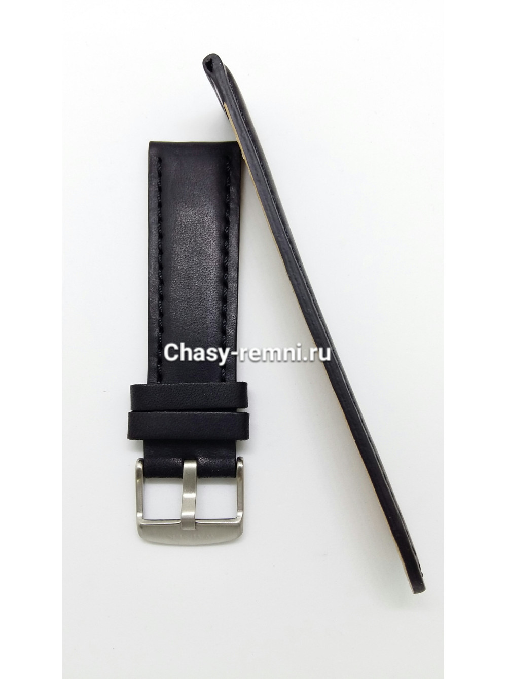 Оригинальный кожаный черный ремешок WAINER, гладкий со стальной пряжкой. Размер входящий в корпус и на пряжку 22/20 мм.