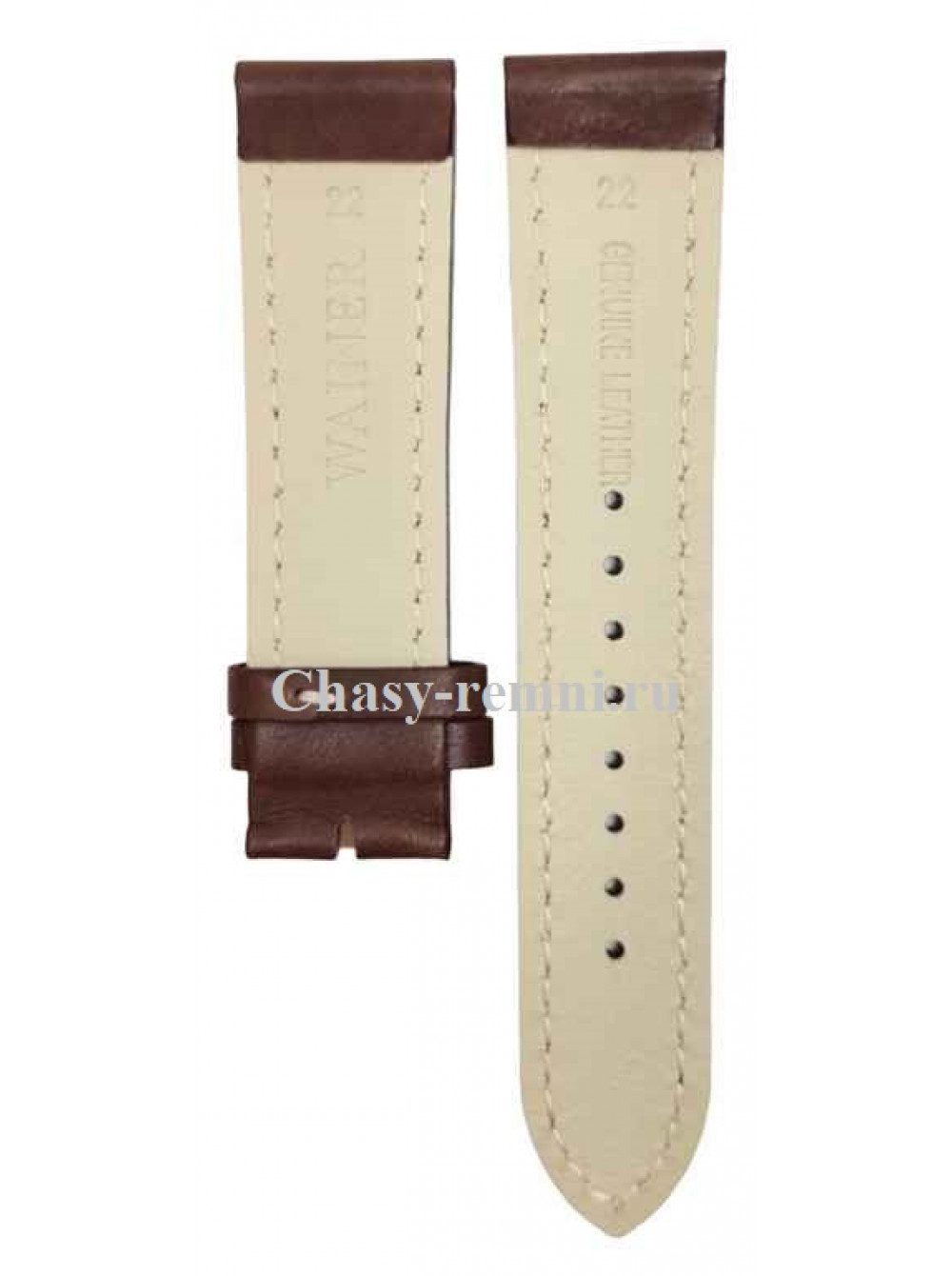 Оригинальный коричневый, кожаный ремешок WAINER, гладкий, с белой прострочкой, без пряжки. Размер ремешка входящий в корпус и на пряжку 22/20 мм. Длина 75*115 мм.