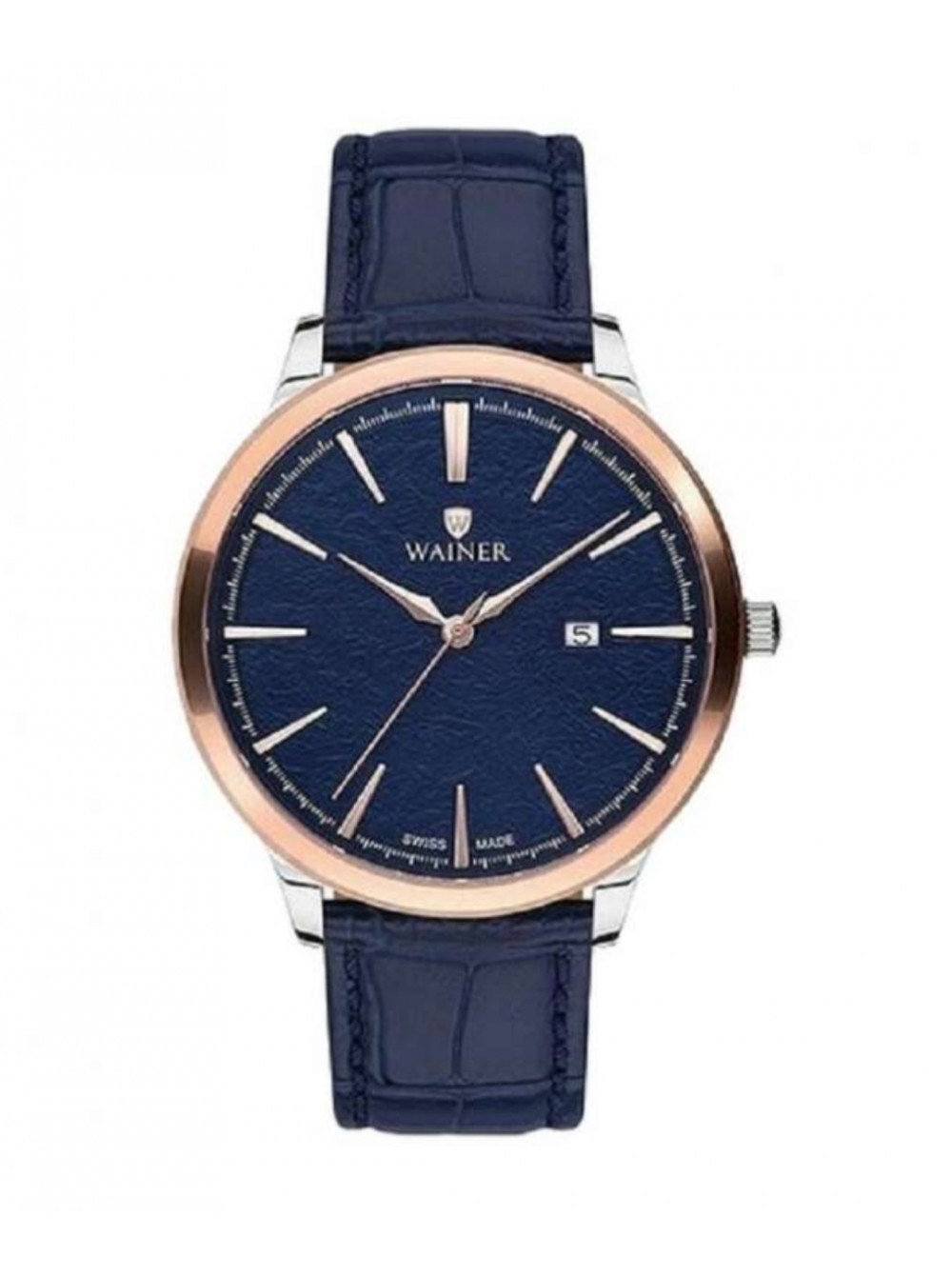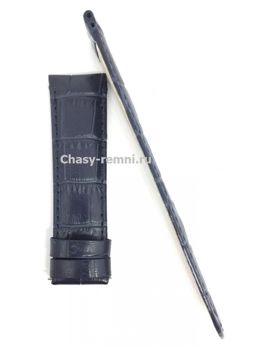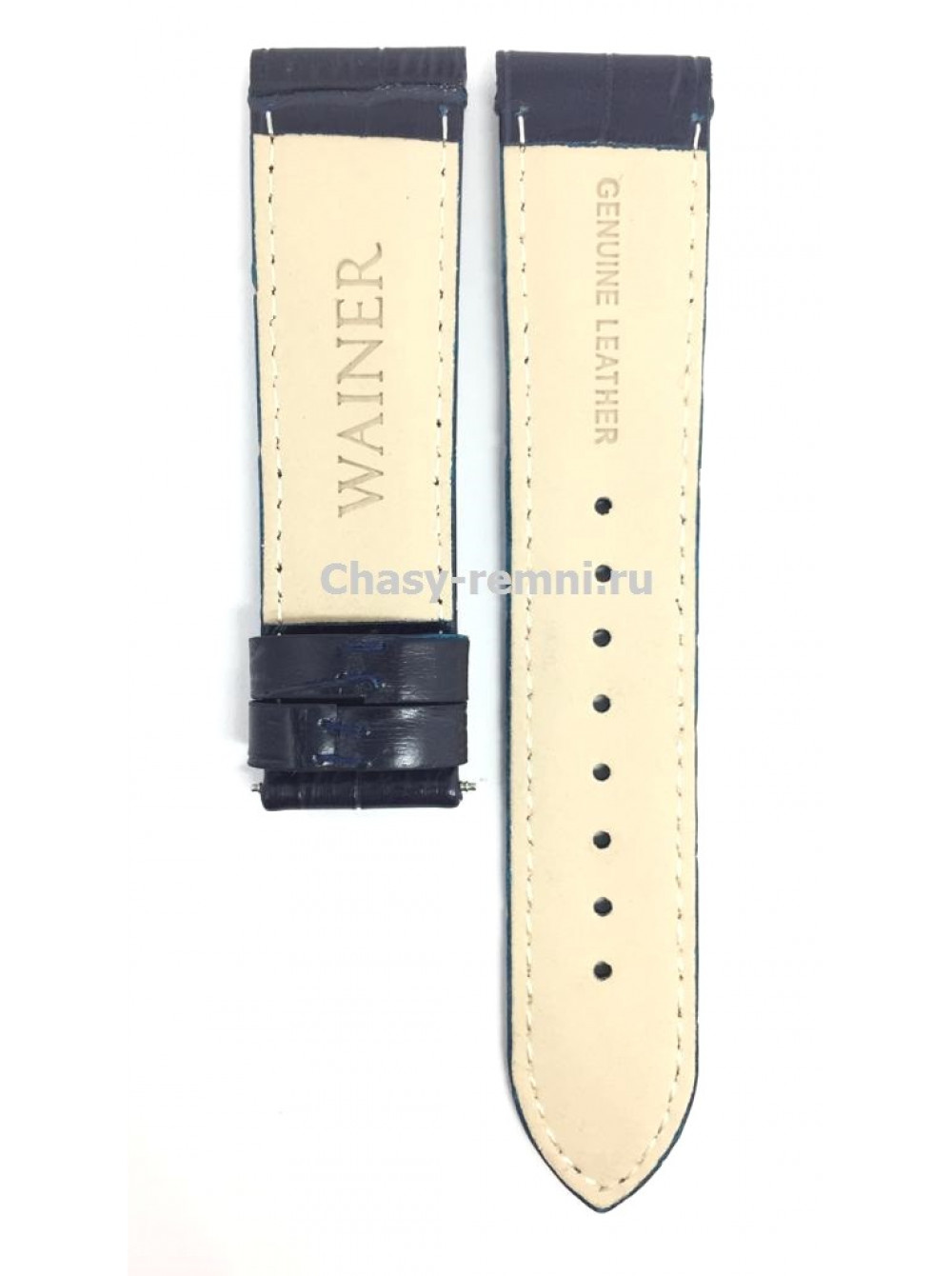 Оригинальный темно-синий, кожаный ремешок WAINER, имитация крокодил, под два ушка, без клипсы. Размер входящий в корпус и на клипсу 22/20 мм.