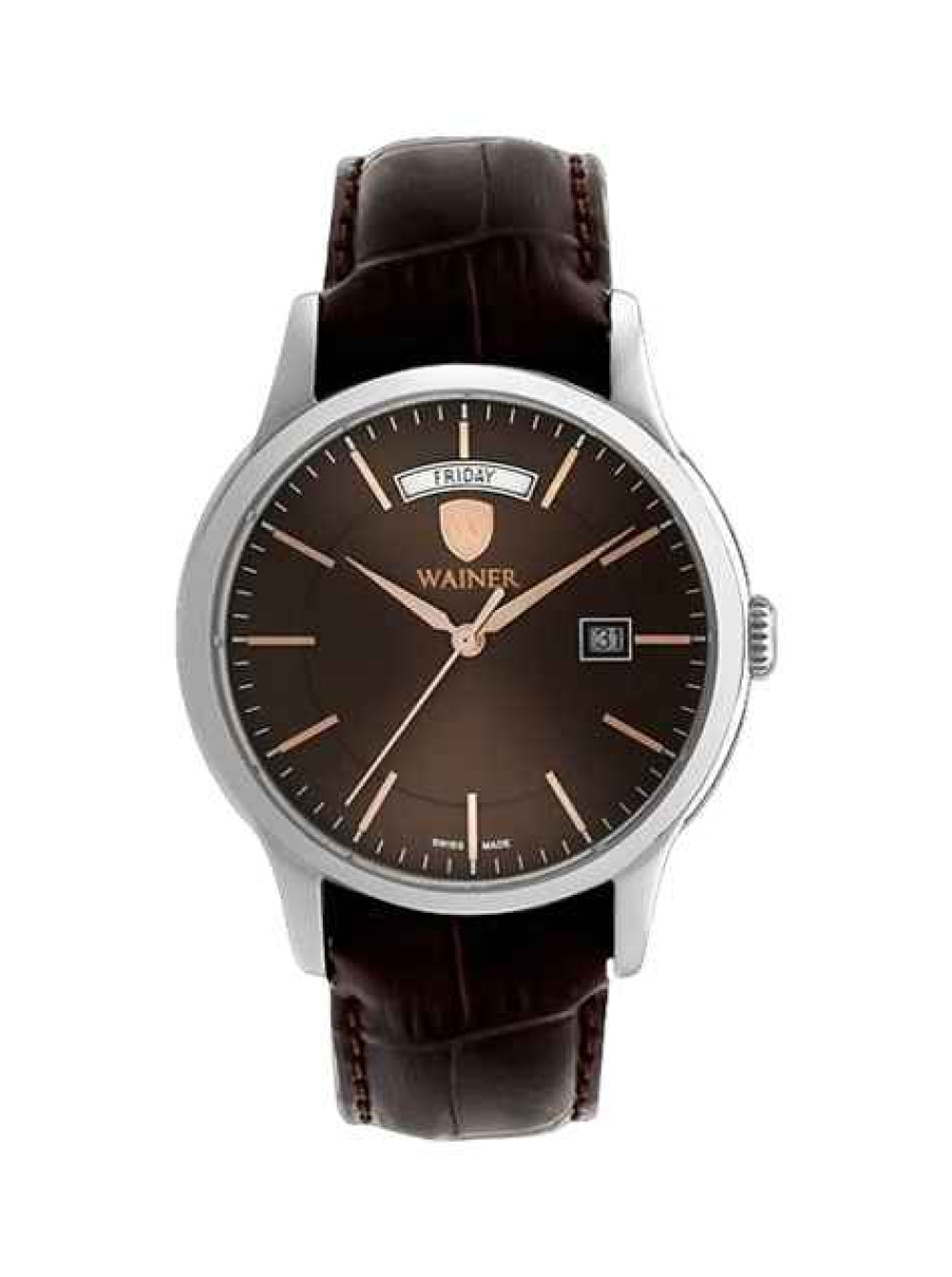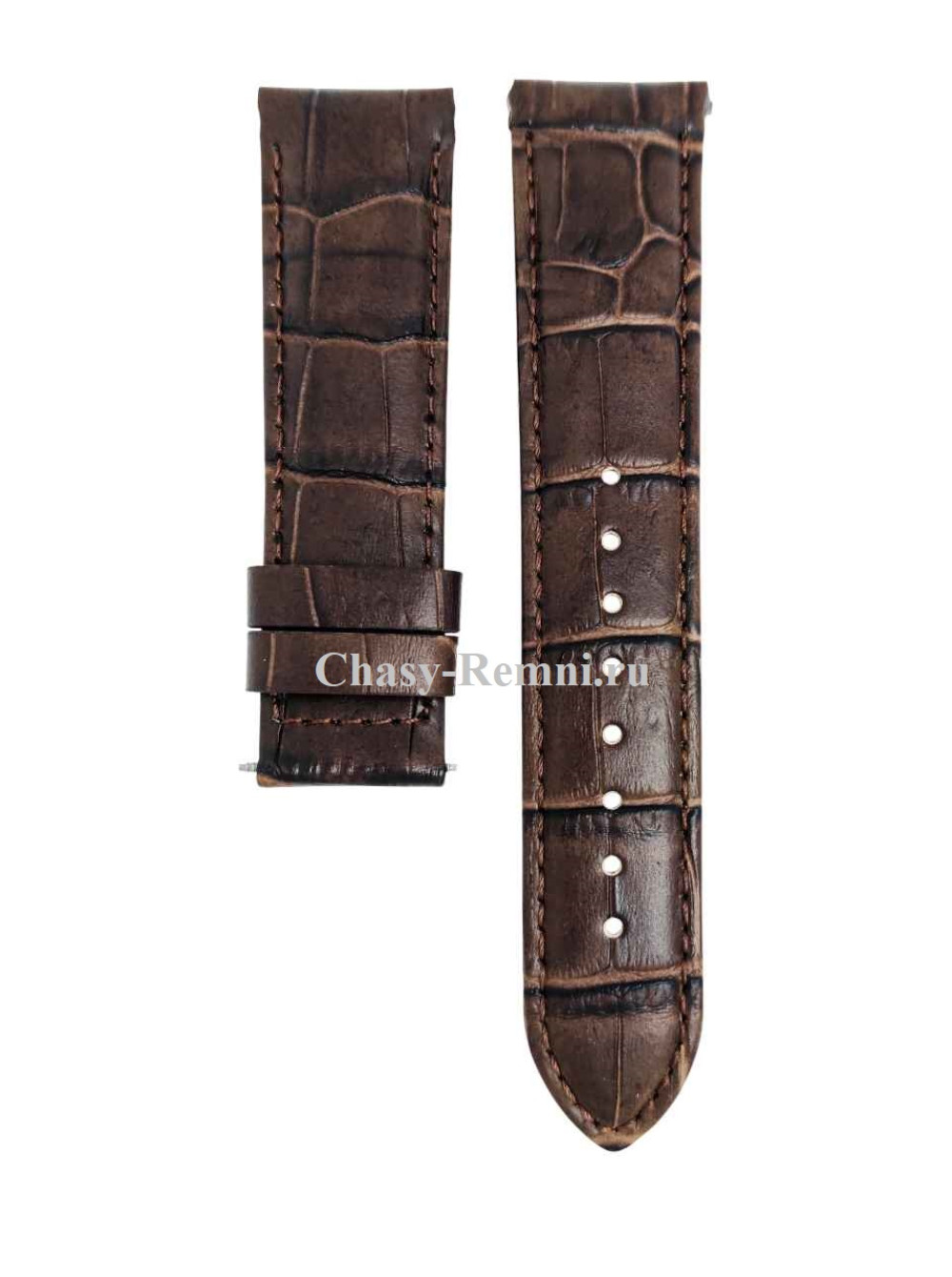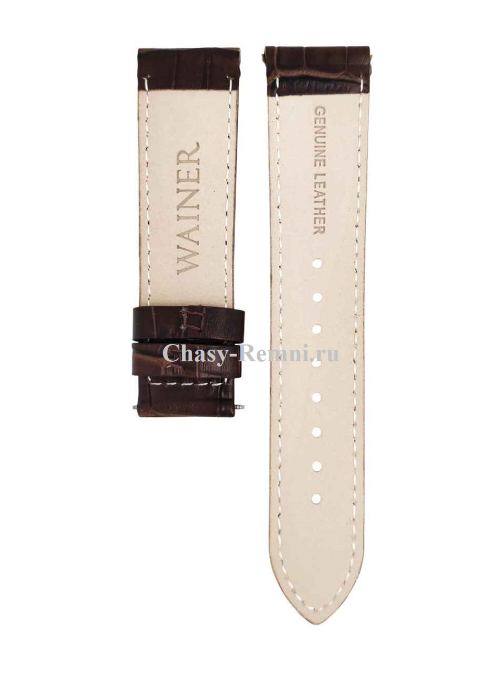 Оригинальный коричневый, кожаный ремешок WAINER, имитация крокодила, под два ушка, без клипсы. Размер входящий в корпус и на клипсу 22/20 мм.