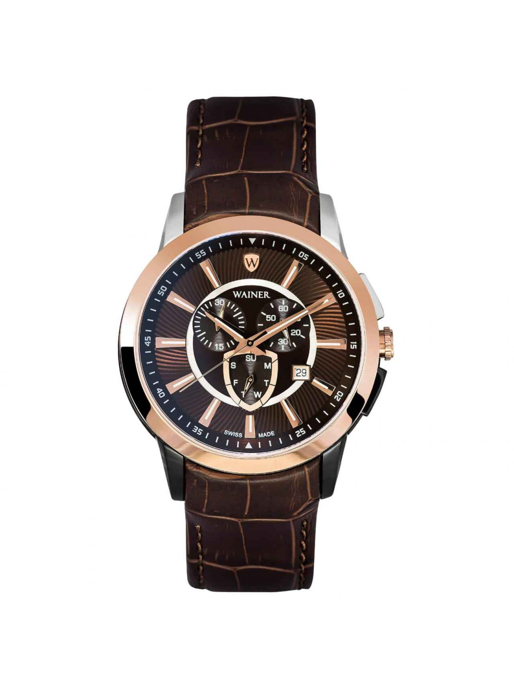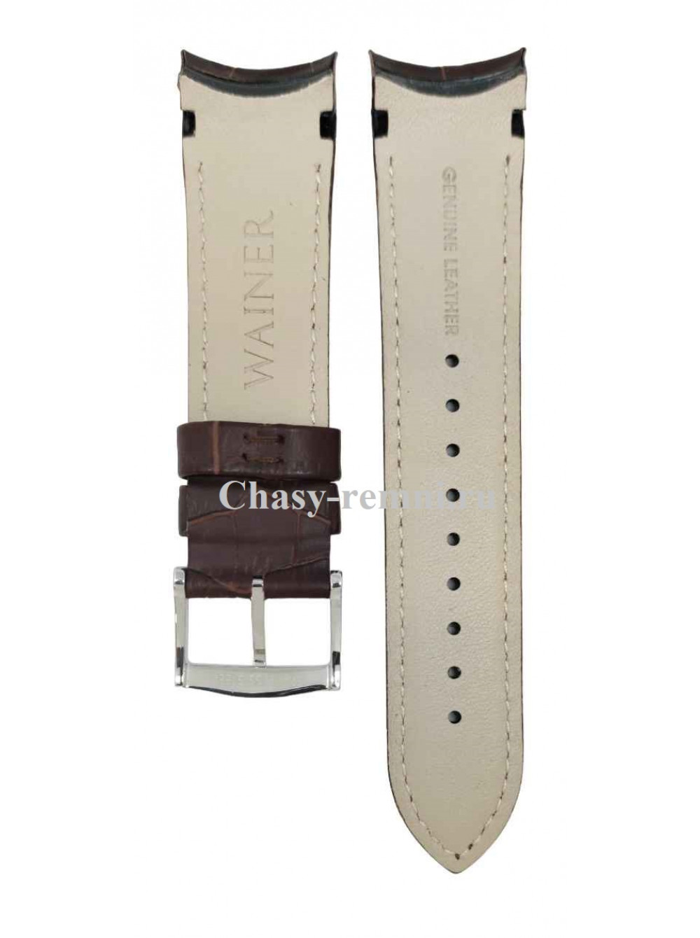 Оригинальный коричневый, кожаный ремешок WAINER. Имитация крокодила, со стальной пряжкой, интегрированный под корпус. Размер ремешка входящий в корпус и на пряжку 24/22 мм. Длина ремешка 80*120 мм.