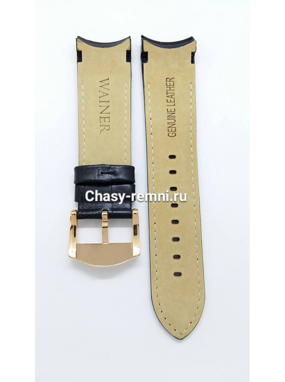 Оригинальный кожаный, черный ремешок WAINER, имитация крокодила с розовой пряжкой.